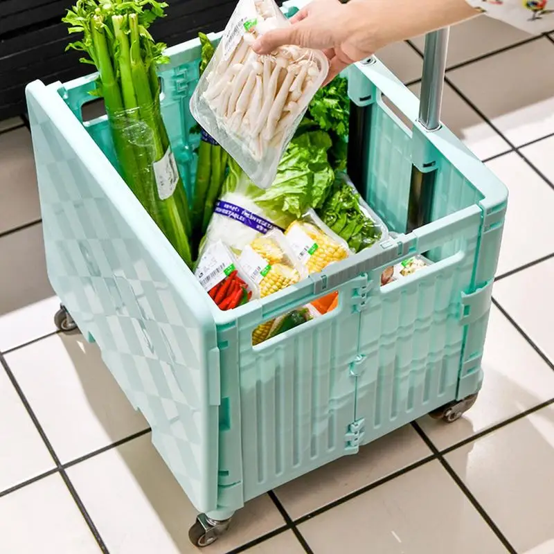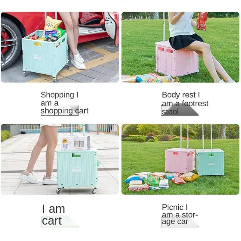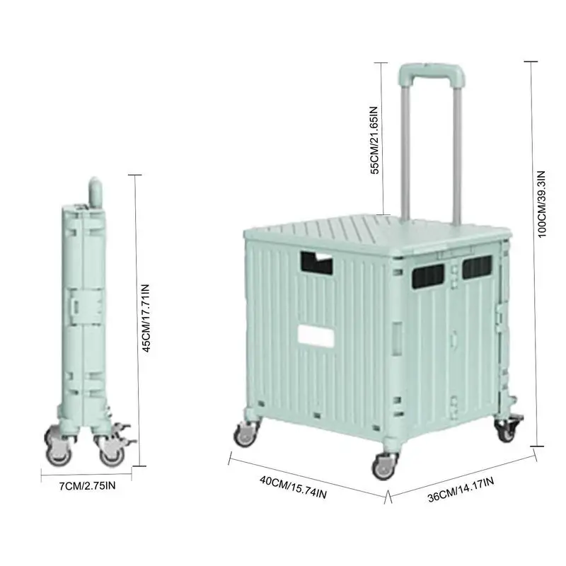 45L/65L Hordozható Nagy Kapacitású Bevásárló Kocsi Teleszkópos Pólus Utazási Tok Összecsukható Kimenő Piknik Tároló Doboz