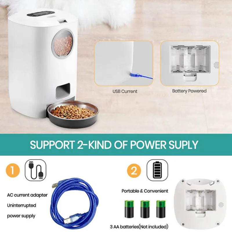 4,5L Automatikus Kisállat -Élelmiszer -Adagoló Kutya Macskaeledel -Tartály Rozsdamentes Acél Tál Intelligens Adagoló Kutyák Adagoló Termékkészletek