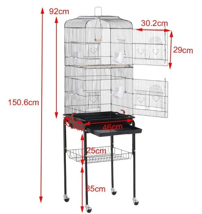 46*35.3*150,6 Cm Drót Madár Ketrec Kerekek Beltéri/Kültéri Nagy Szögesdrót Tetőablakokkal Hatalmas Papagáj Ketrec Alsó Univerzális Kerekek