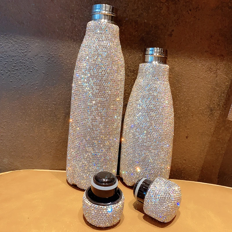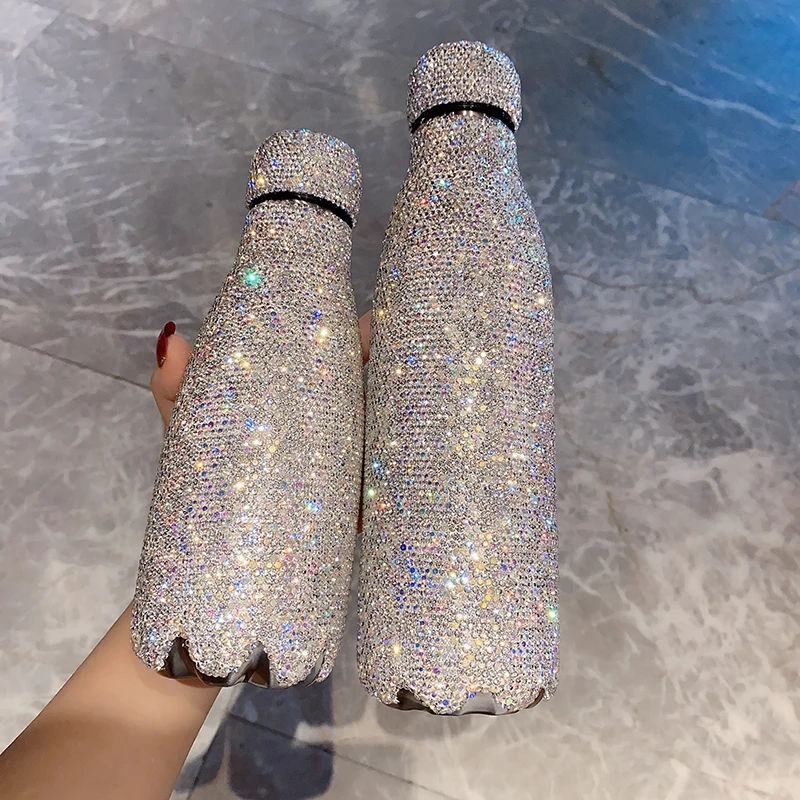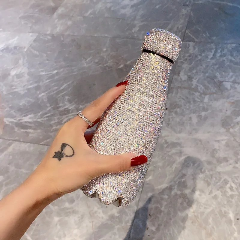 480 Ml Luxus Vákuum Lombik Teljes Gyémánt Nőstény Bling Aranyos Hordozható Forró Vizes Palack Termosz Bögre Csésze Lánynak Ajándékok Kawaii