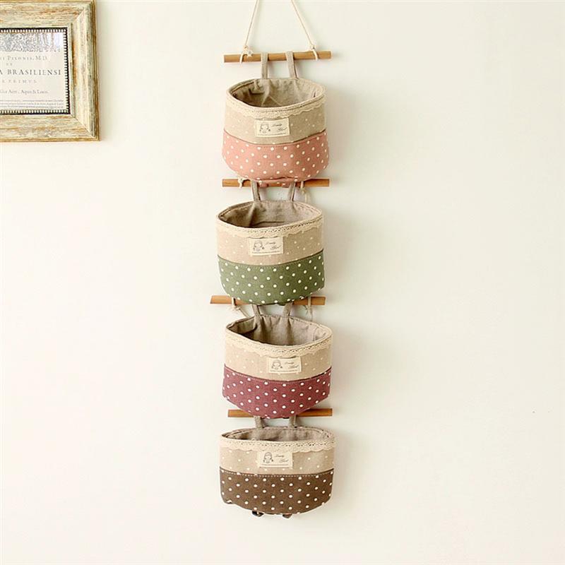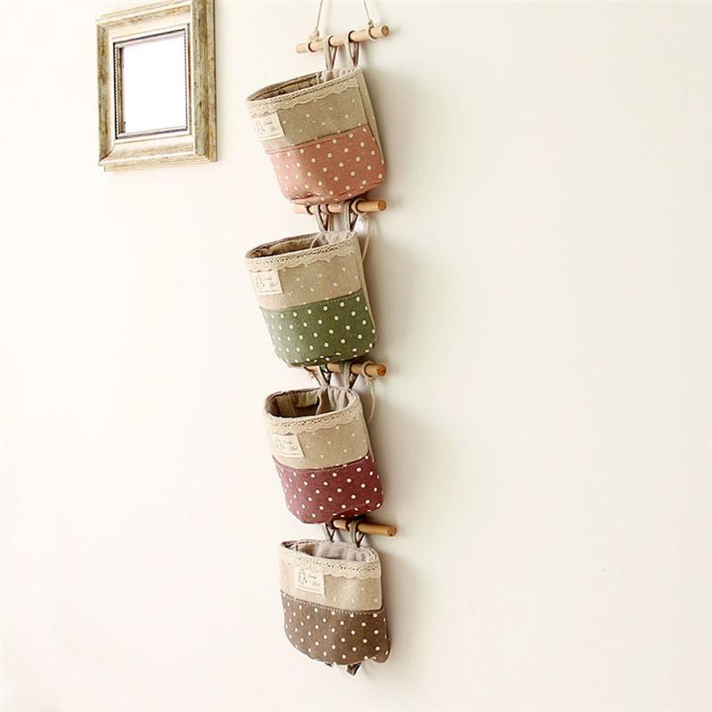 4Db Fali Függesztő Szervező Táska Csipke Díszítő Tároló (Lila És Zöld Kávé Rózsaszín)