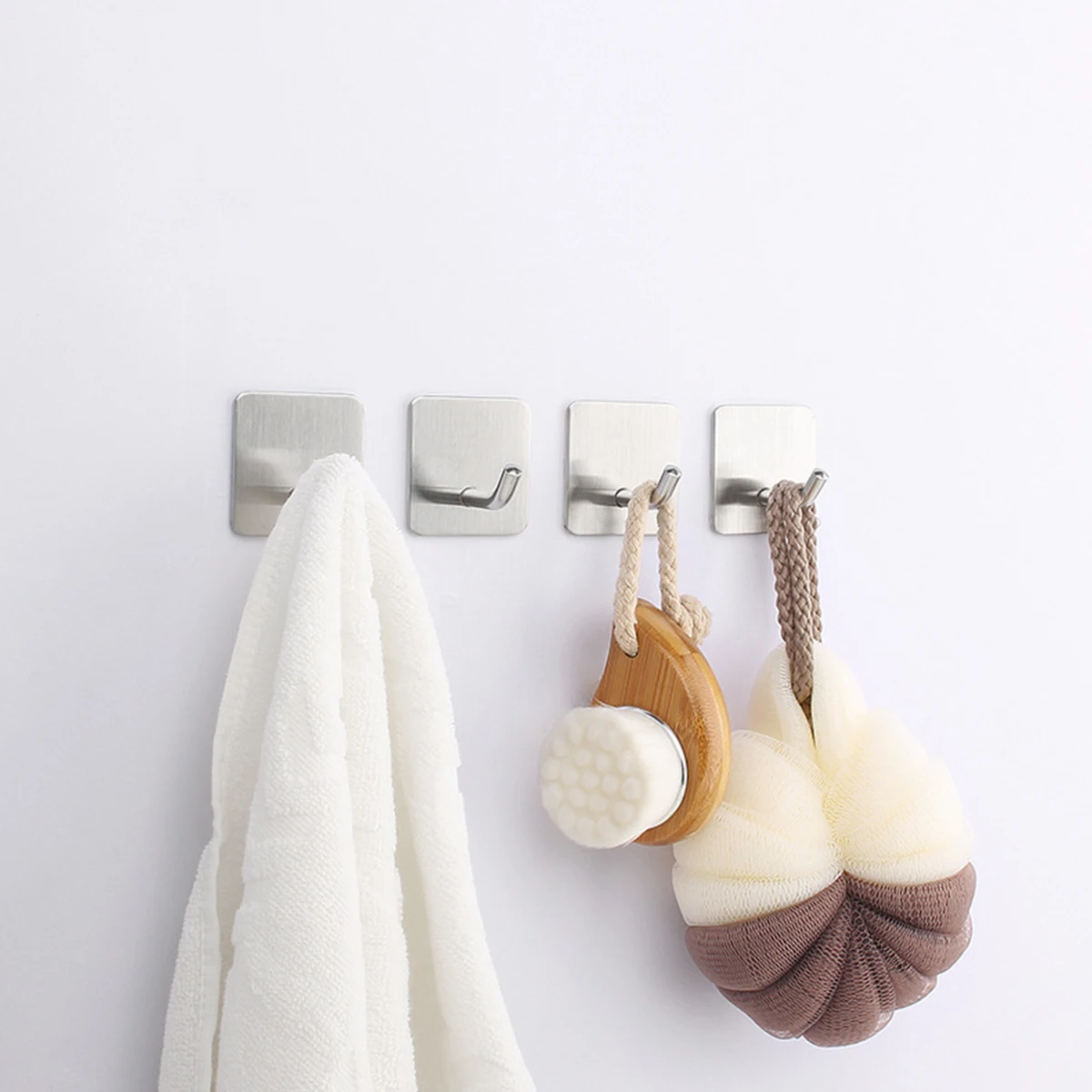 4Db Ragasztóhorog 304 Rozsdamentes Acél Fali Törülköző Hook Heavy Horce Coat Kötélhorog Vízálló Fürdőszoba Horog Nincs Fúrási Kalap