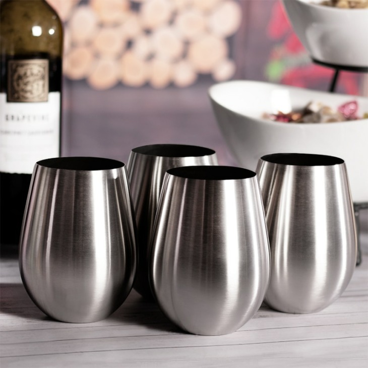 4Db Rozsdamentes Acél Szár Nélküli Borospoharak Konyhai Bár Törhetetlen Fém Italpoharak Beltéri És Kültéri Piknik Kempinghez