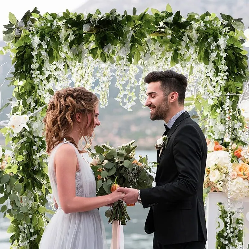 4 db Szimulált Wisteria Virág Szőlő Esküvői Öltözködési Tereprendezés Mennyezeti Cső Dekoráció Hamis Virághúrok 7000Pcs Piros És