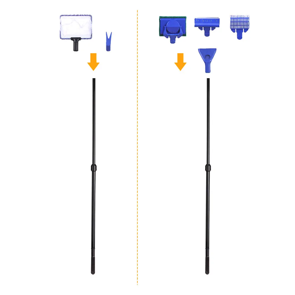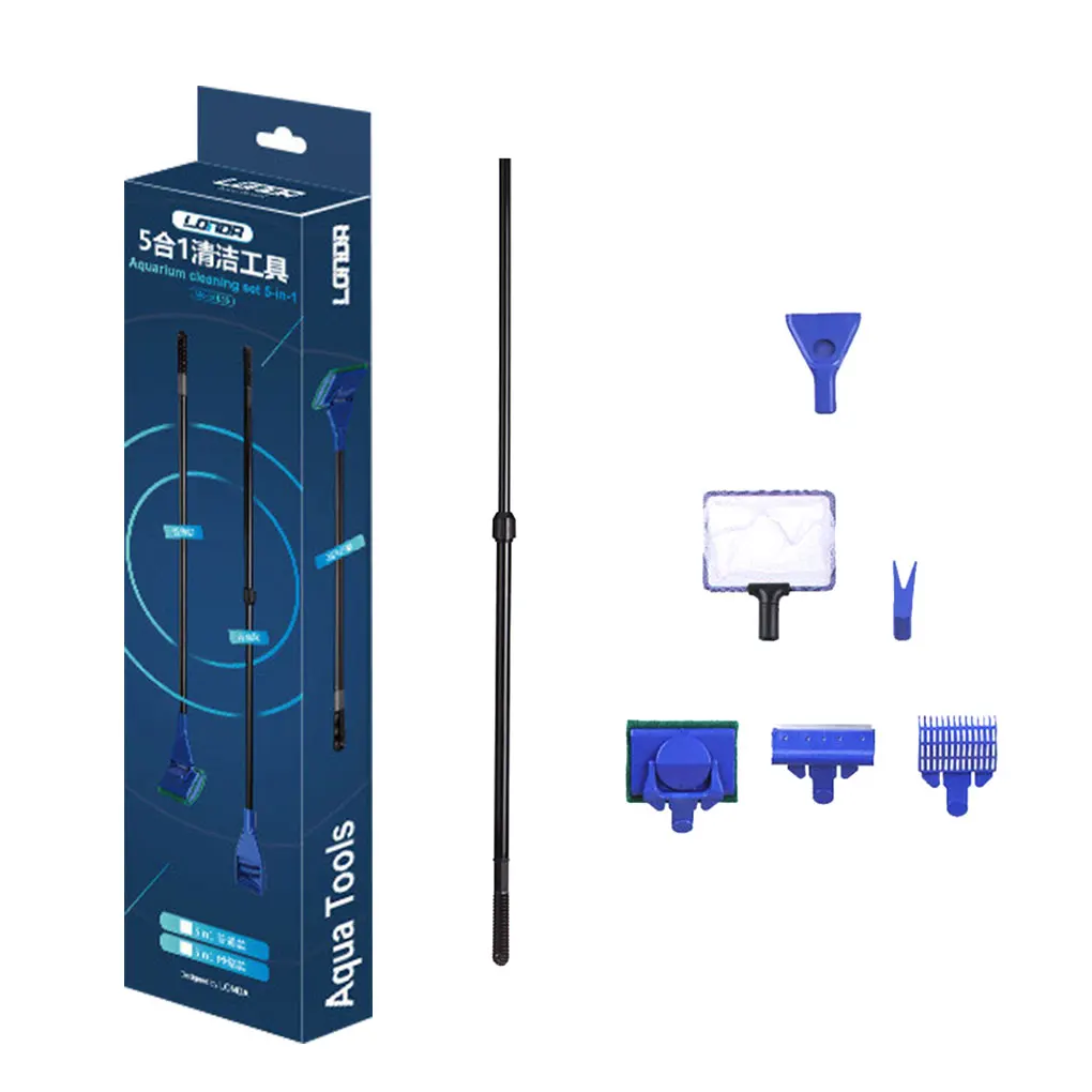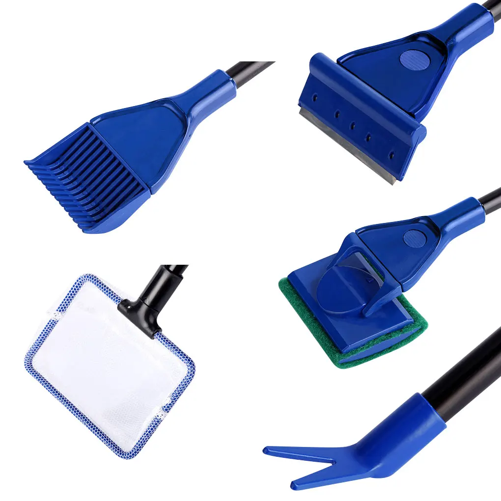 5 Az 1 -Ből Az Akváriumi Haltartálytisztító Szerszámkészlet Kavicsos Gereblye Algák Fű Klip Hosszú Fogantyú Kefe Horgászháló
