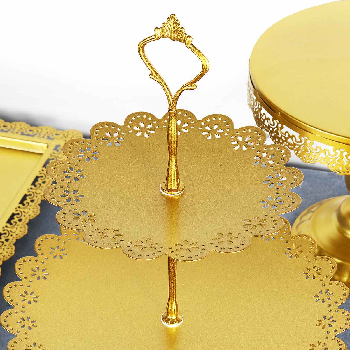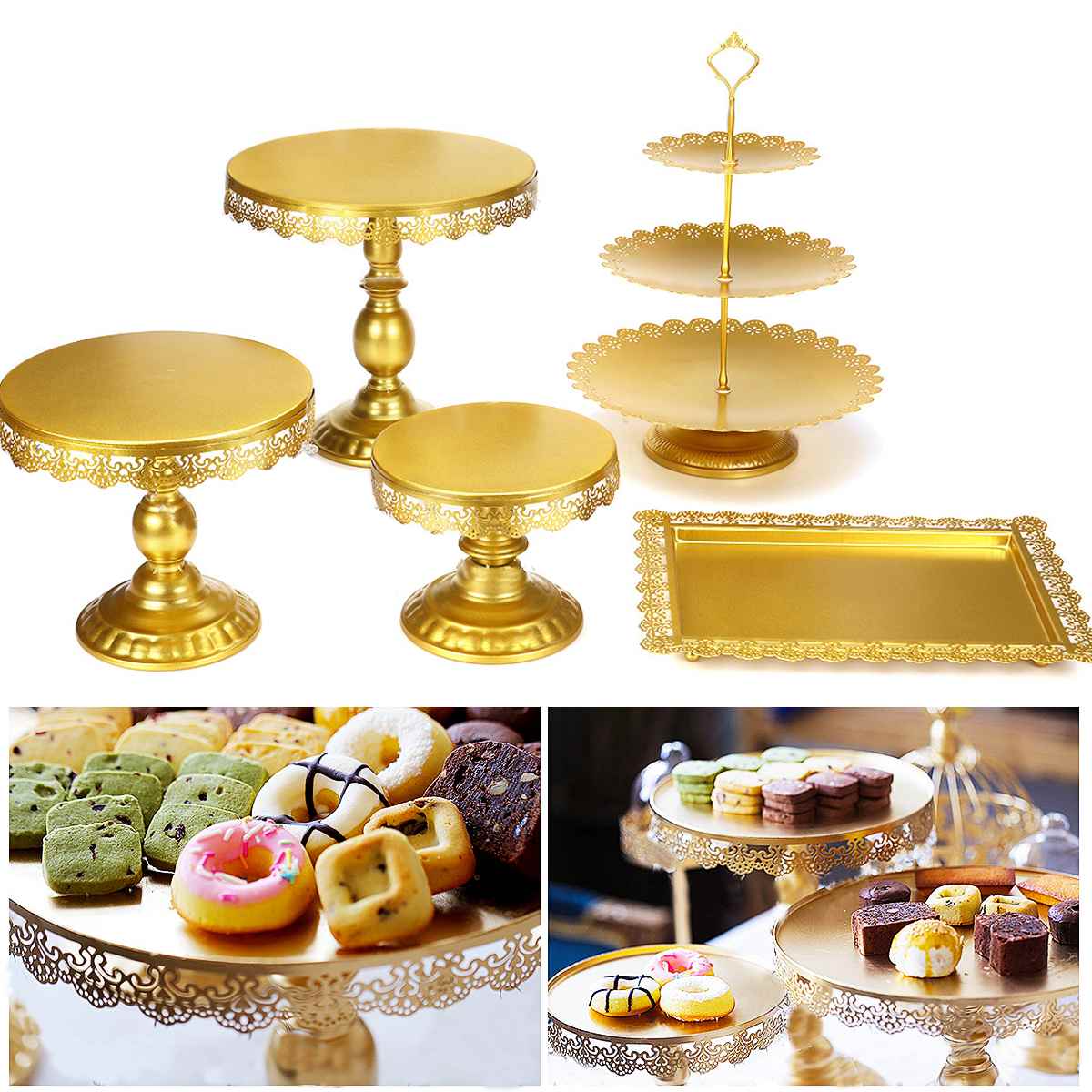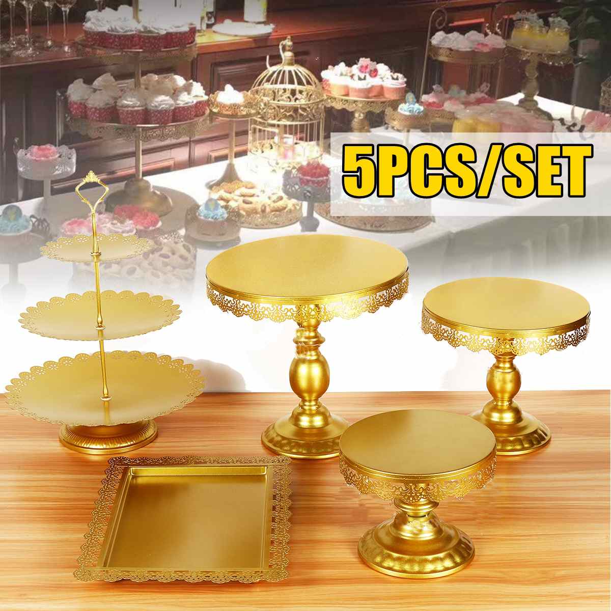 5 Darab Arany Torta Állvány Beállított Kerek Fém Kristály Cupcake Desszert Kijelző Talapzat Esküvői Party Desszert Asztal Dekoráció