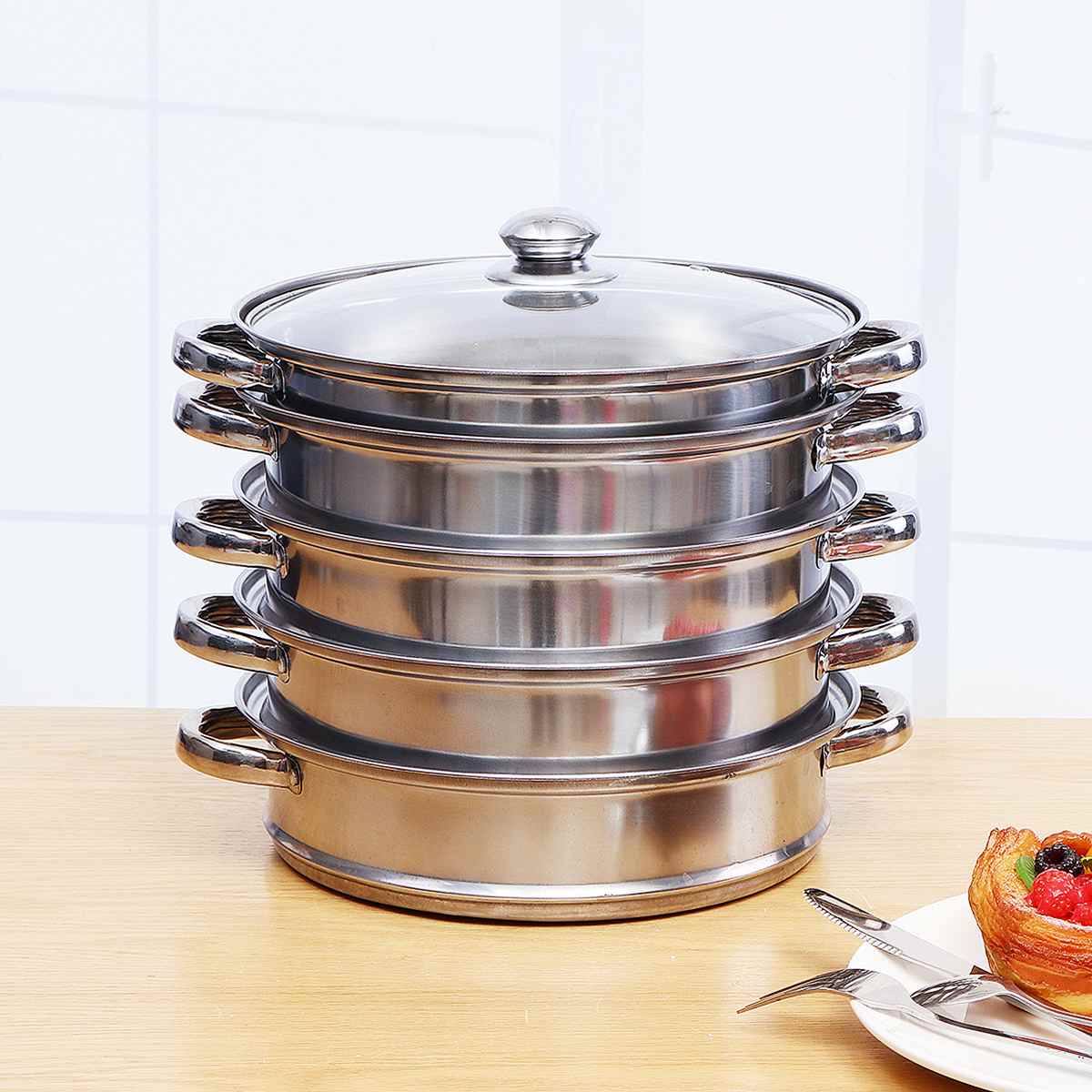 5 Réteg Rozsdamentes Acél Vastag Gőzös Edény Leves Gőz Edény Univerzális Főzőedények Indukciós Tűzhely Gáz Kályha Gőz Edény