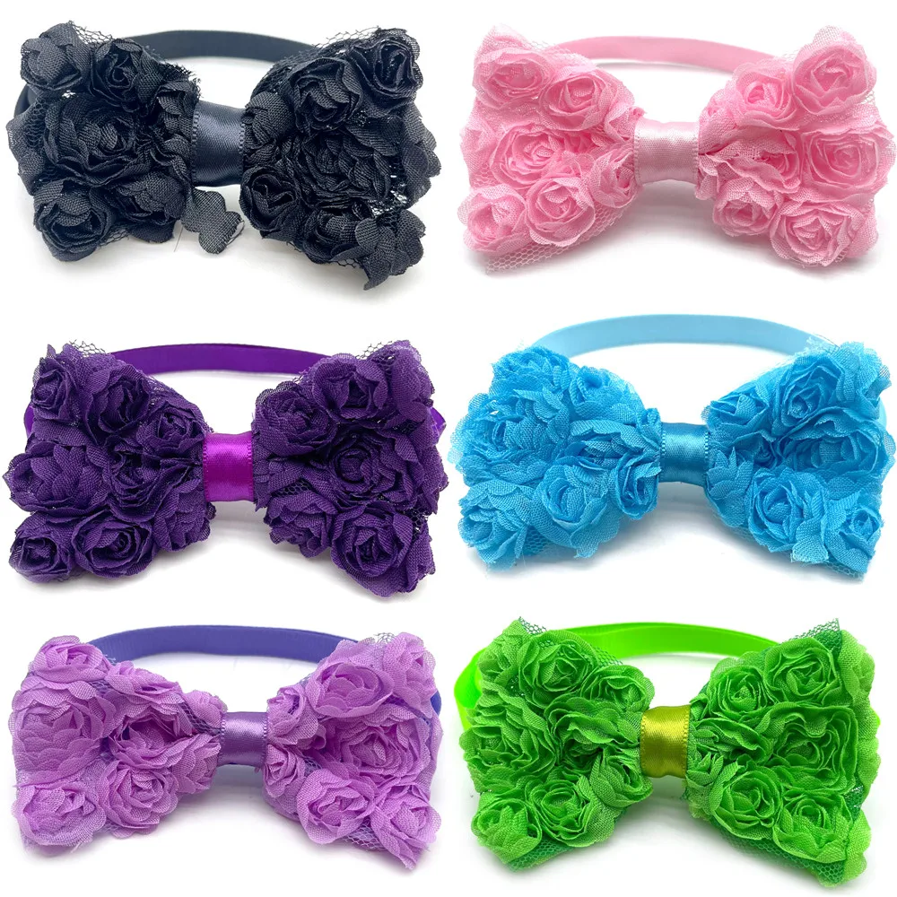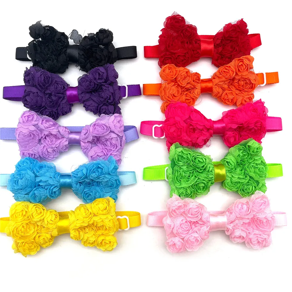 50/100 Darabos Kutya Virágok Csokornyakkarok Rózsa Stílusú Kisállat -Ellátás Kutya Kiegészítők Kis Kutyák Macska Íj Nyakkutyák Kutyák Ünnepi Termékek