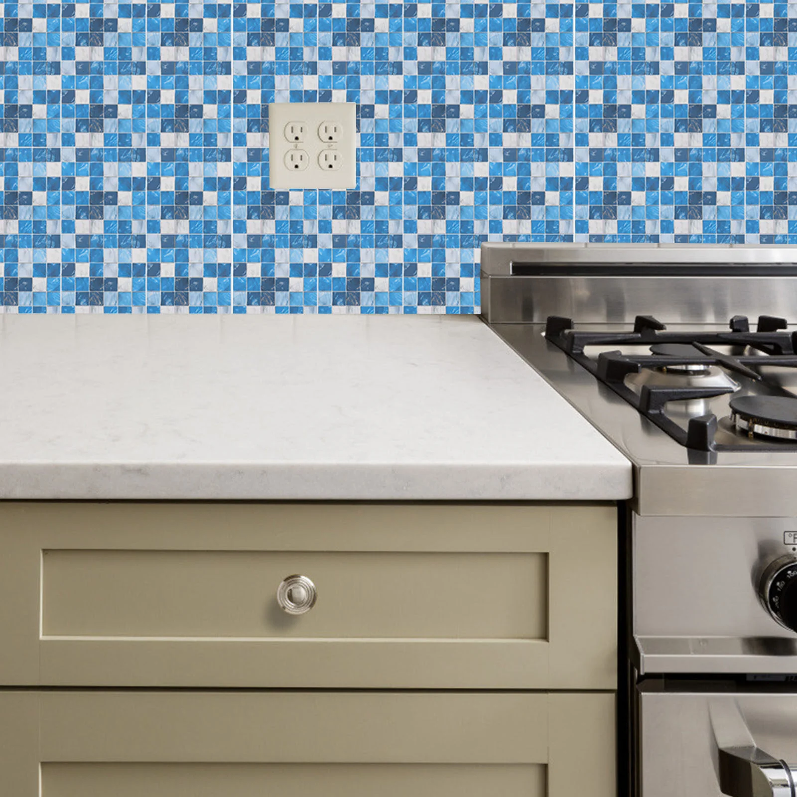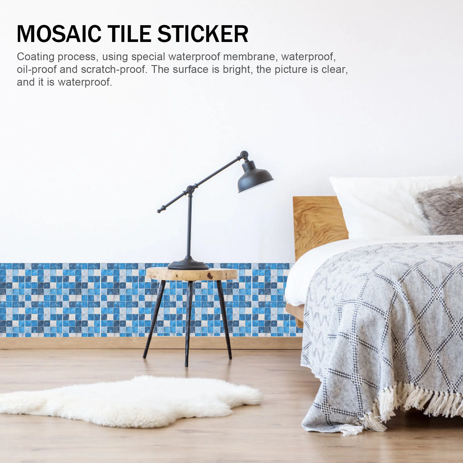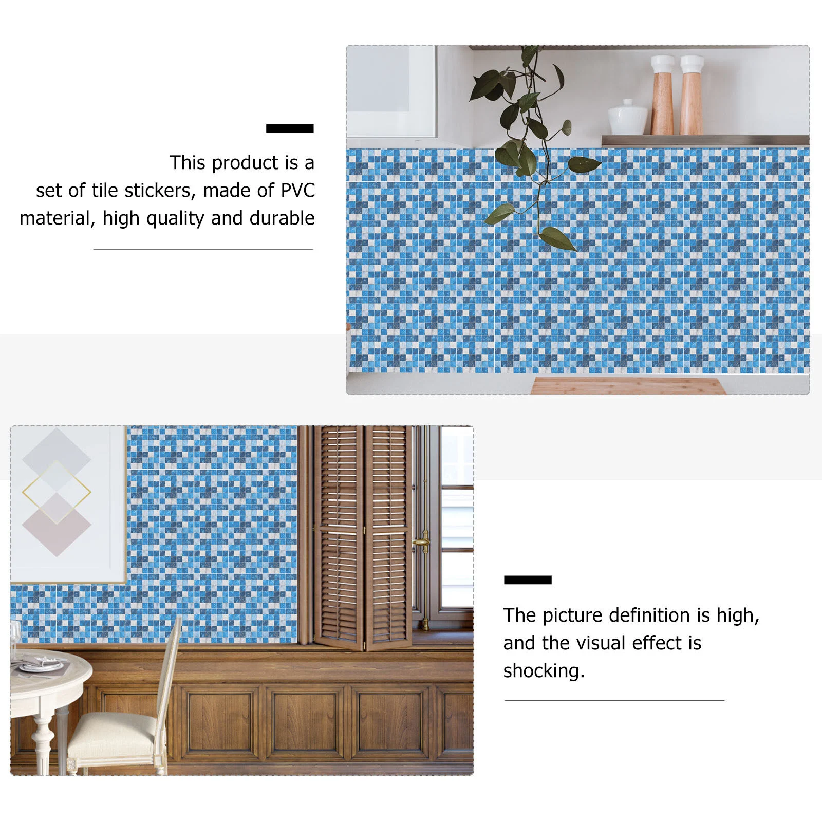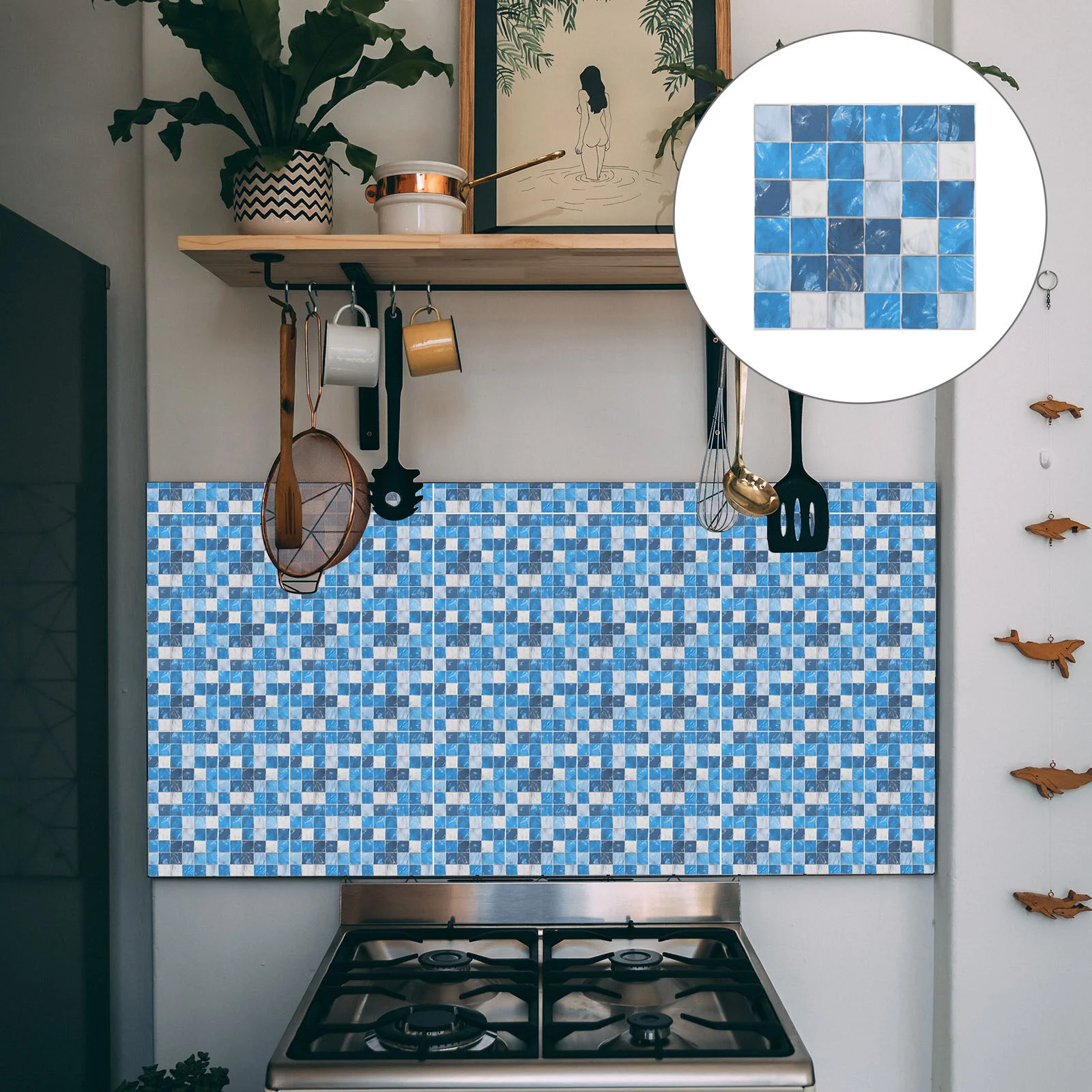 50 Dcs Kék Otthoni Dekoráció Szimulált Kis Csempe Matricák Önmagasztó Fali Paszta 10X10Cm Mozaik Dekoratív Papír 3D