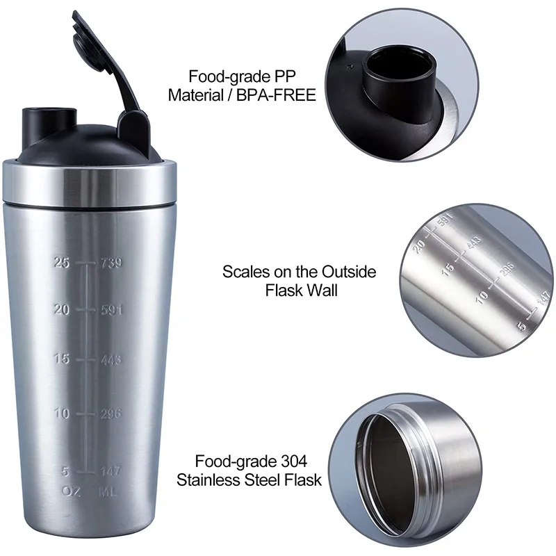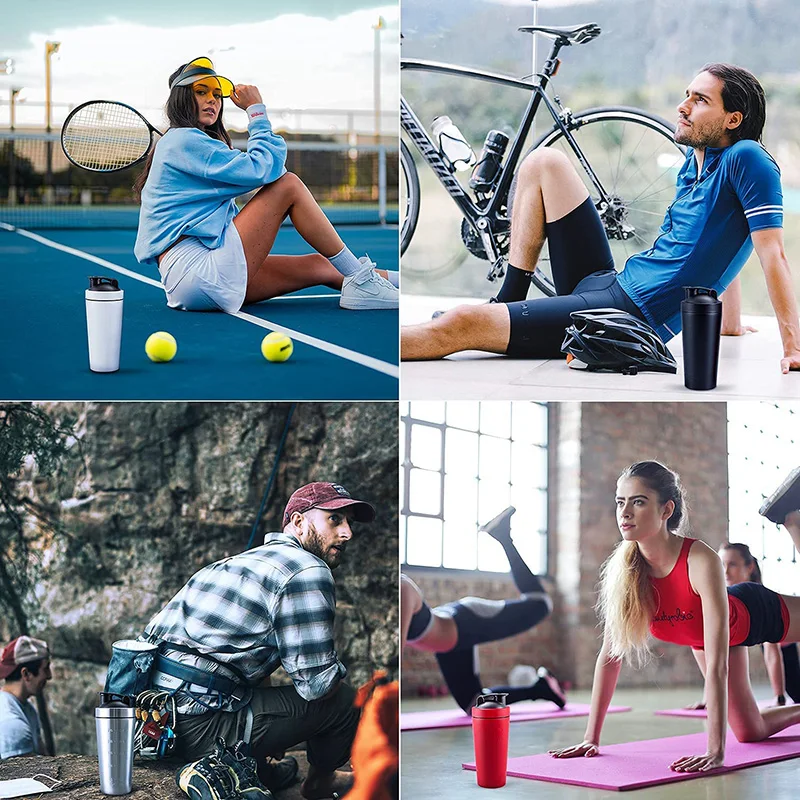 500 Ml/750 Ml Szivárgásbiztos Sport Fitnesz Tornaterem Fehérje Shaker Palack 304 Rozsdamentes Acél Rázó Csésze Vákuumkeverő Kültér