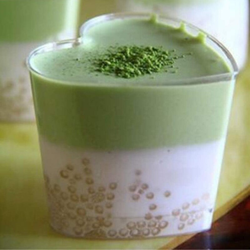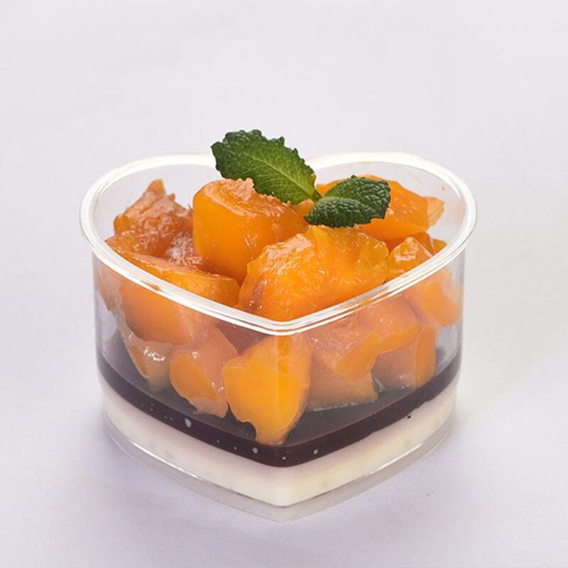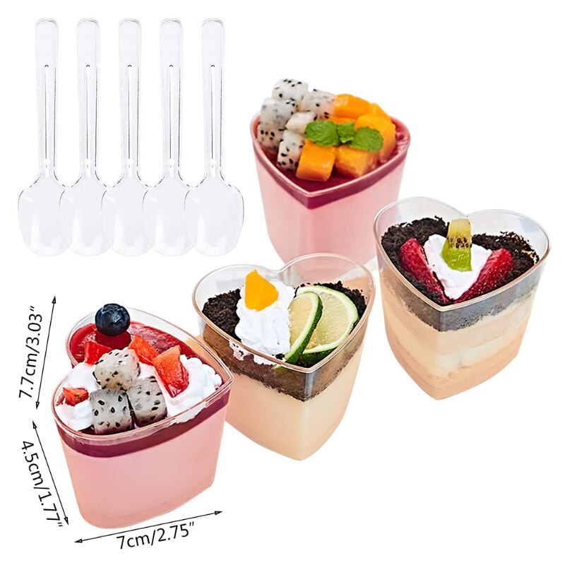 50Db Desszert Csésze Kanálral Átlátszó Műanyag Mousse Puding Előétel Csészék Szív Alakú Eldobható Parfait Tálak Tálak