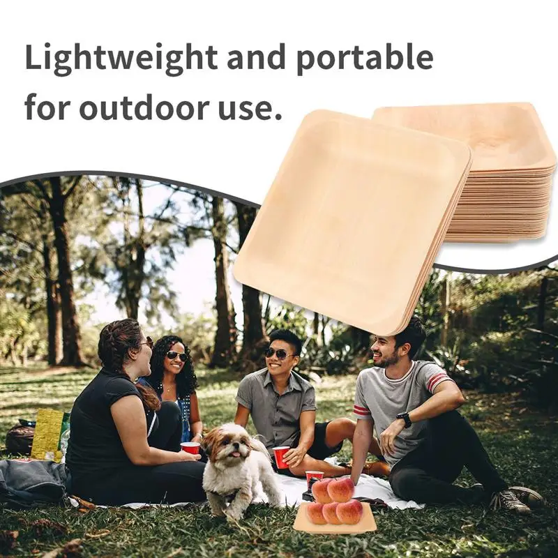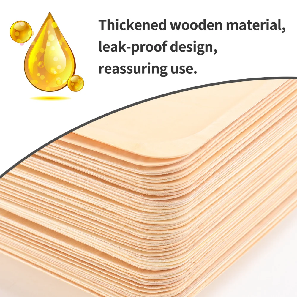 50Db Eldobható Fa Lemez Négyzet Alakú Asztali Parti Tányérok Esküvői Étterem Piknik Születésnapja