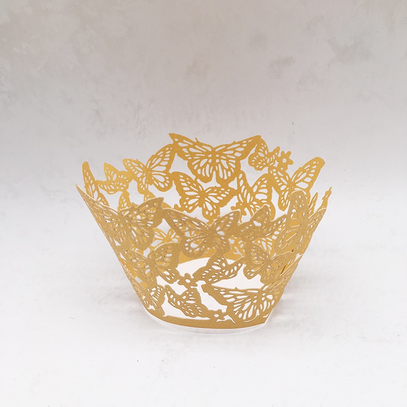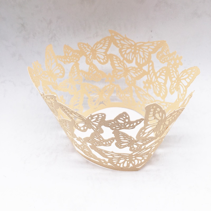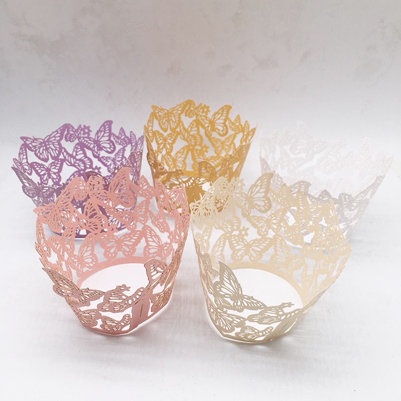50Db Lézeres Vágású Pillangó Cupcake Csomagoló Muffin Papírpohár Doboz Születésnapi Party Favor Baba Zuhany Esküvői Dekoráció