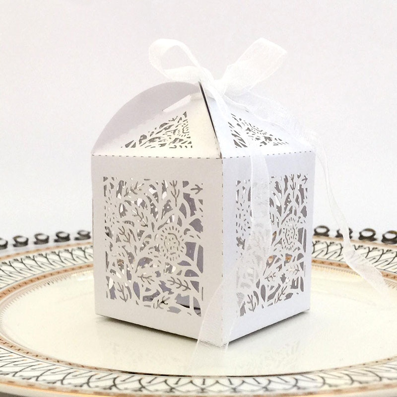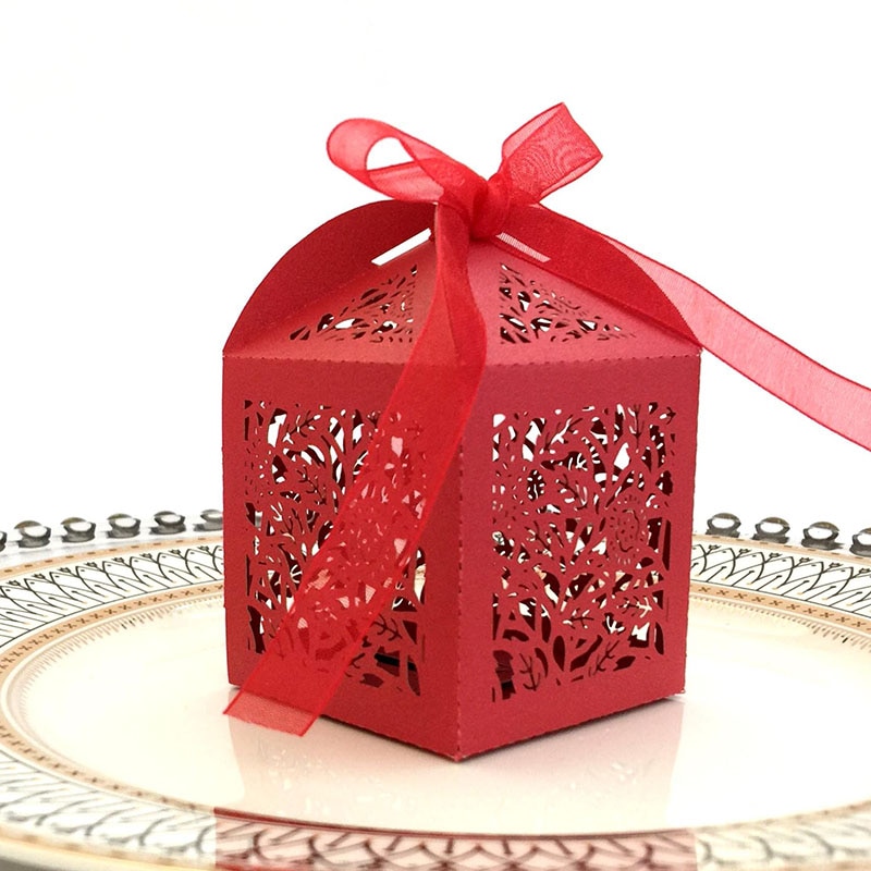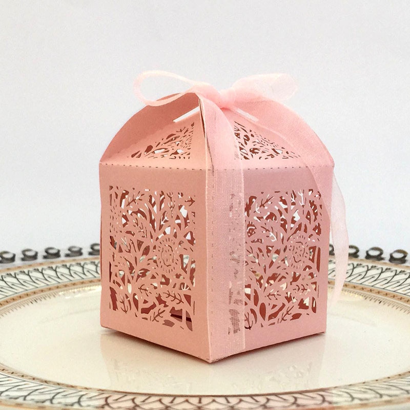 50Db Lézerrel Vágott Üreges Rózsa Virágkocsi Kedvező Ajándékok Édességdobozok Szalaggal Egyedi Baba Zuhany Esküvői Party Favor Kellékek