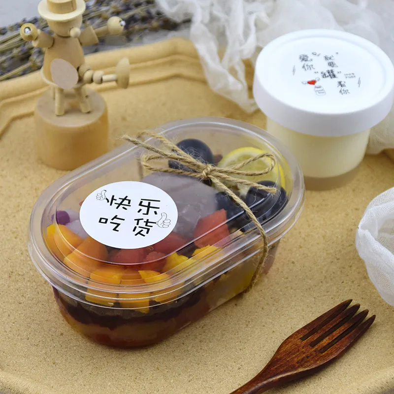 50Db Nettó Piros Háziállat Műanyag Tál Átlátszó Torta Doboz Csomagolás Gyümölcs Saláta Fagylalt Puding Zselés Desszert Csésze Fedéllel 500 Ml