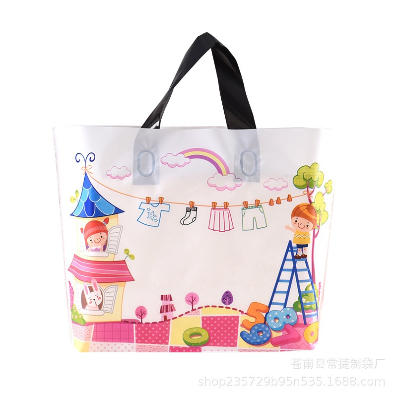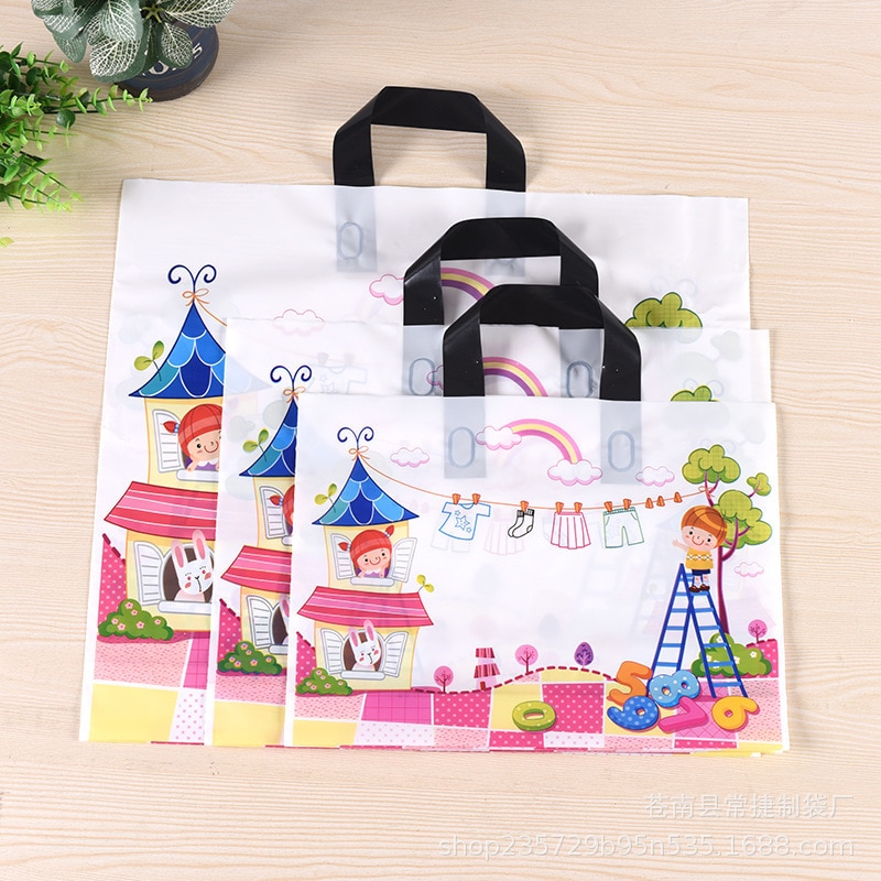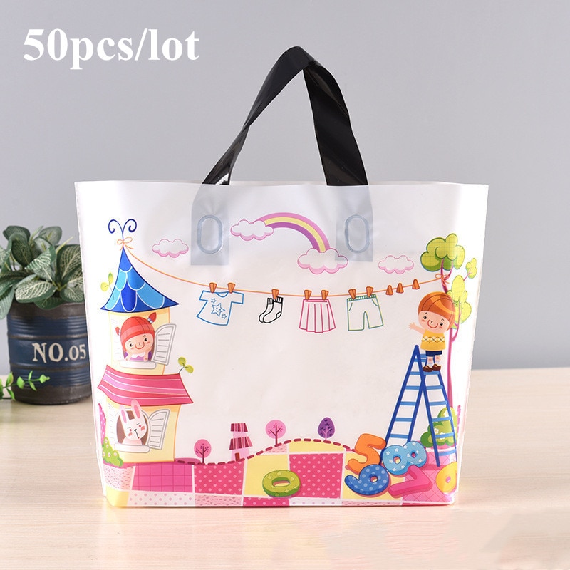50Db / Tétel Rajzfilmfigurák Műanyag Ajándékzsákok Vastag Hordozható Tároló Bevásárló Táskák Ruházati Esküvői Parti Kellékek