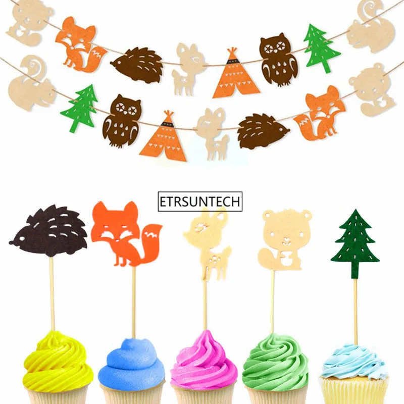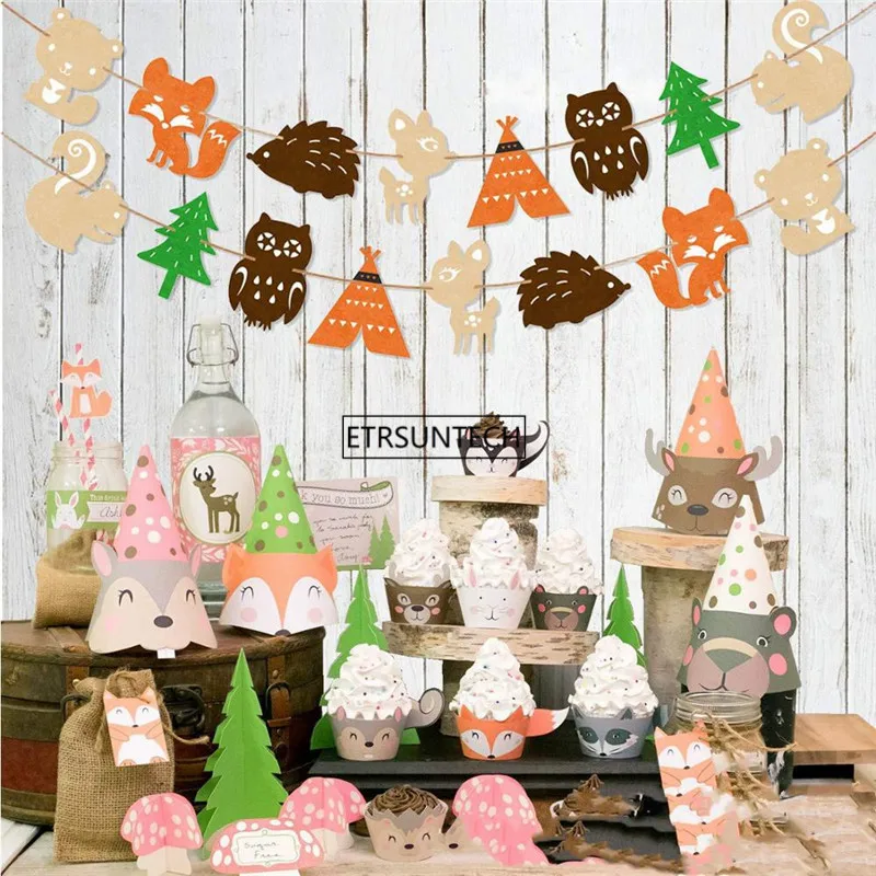 50 db Erdei Teremtmény Szalaghirdetés Boldog Születésnapot Baba Zuhany Gyerekek Kedvenc Erdei Állati Parti Dekorációk Pet Party Dekoráció