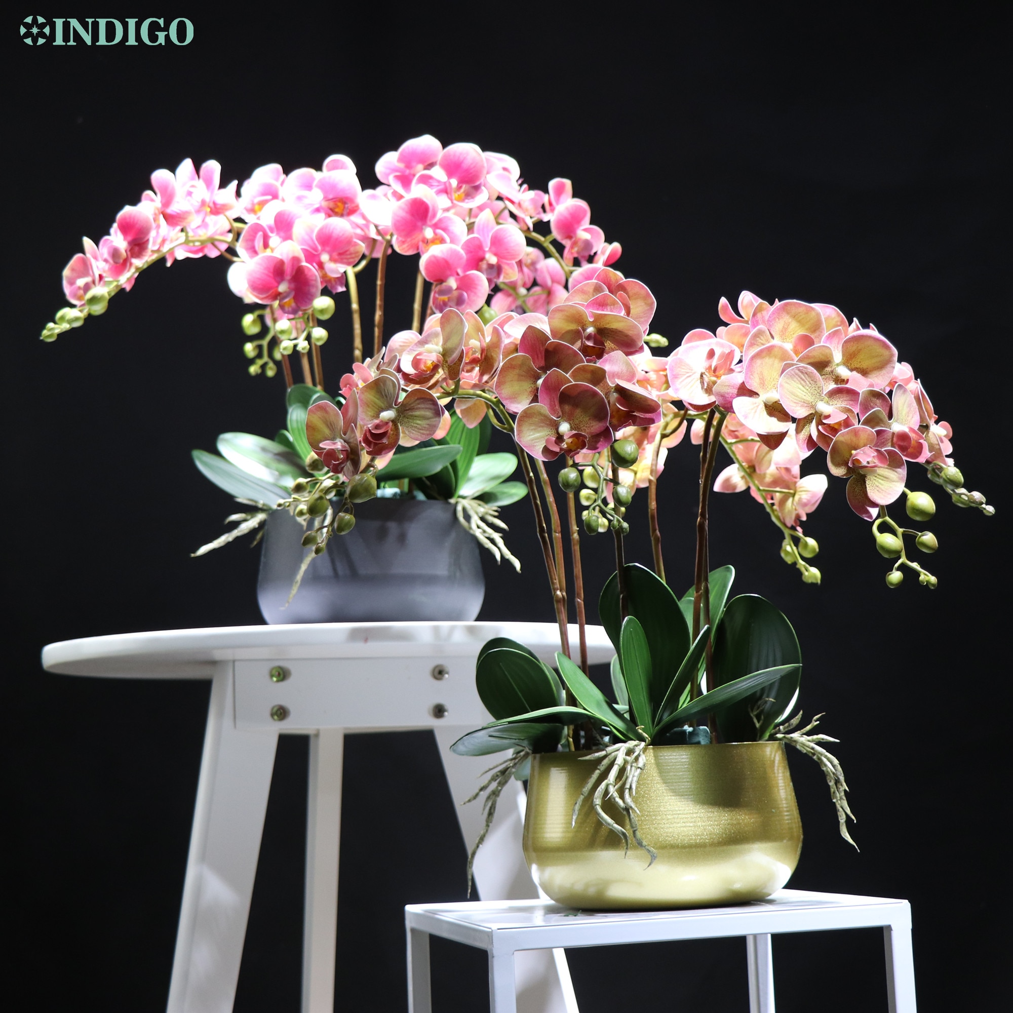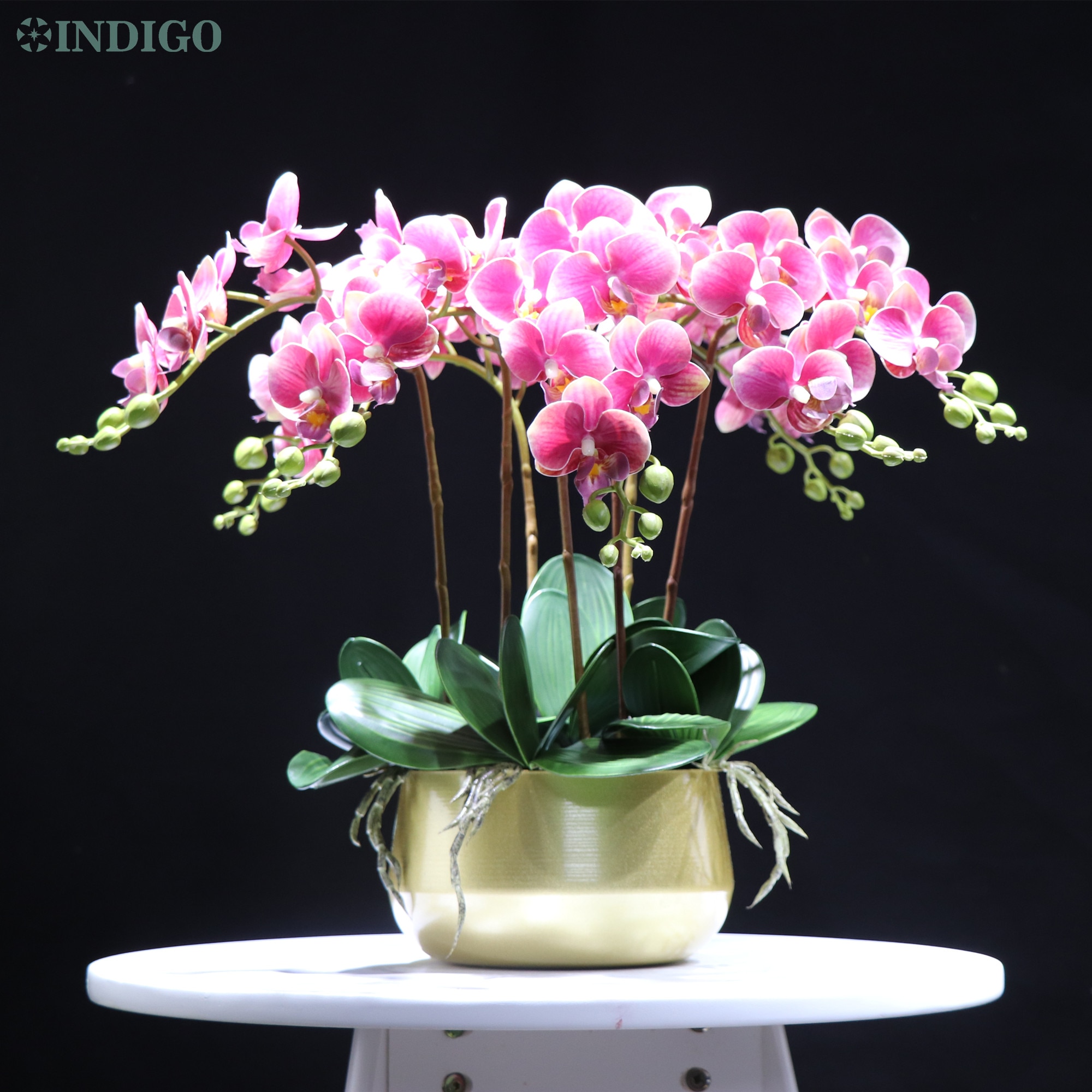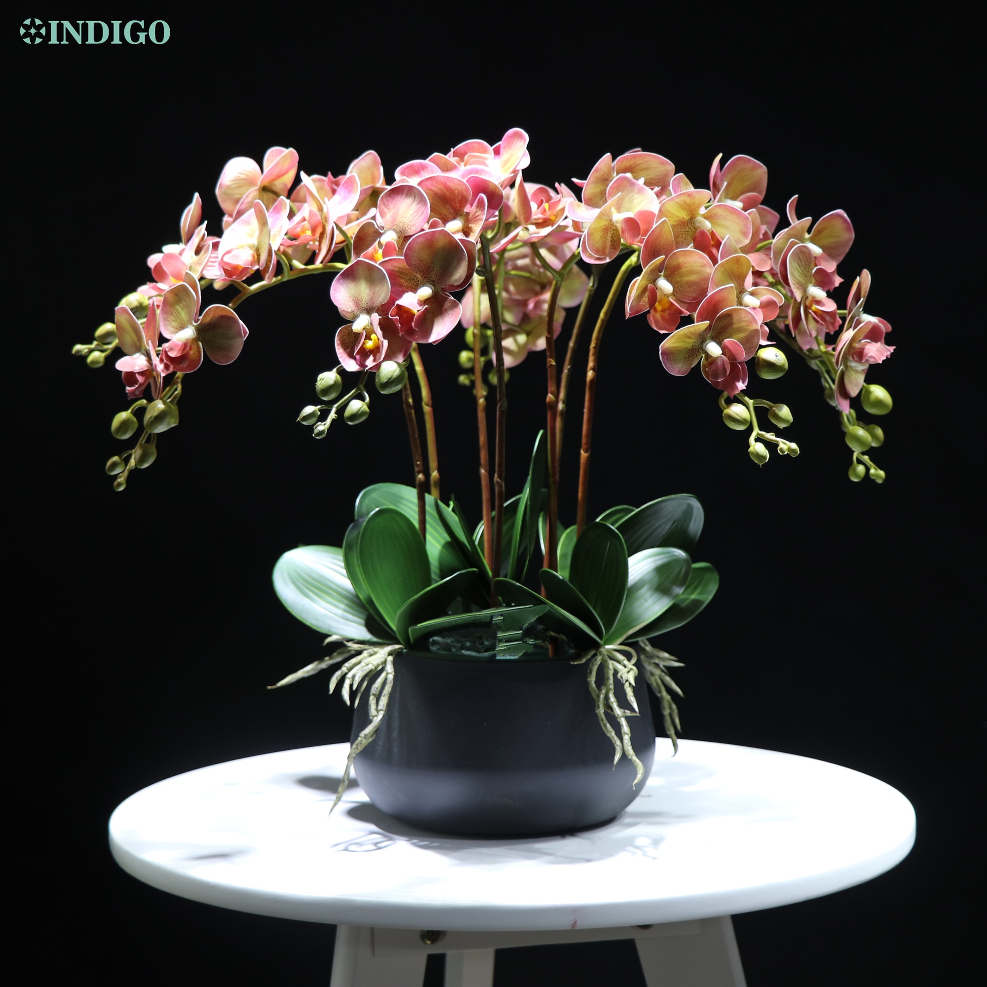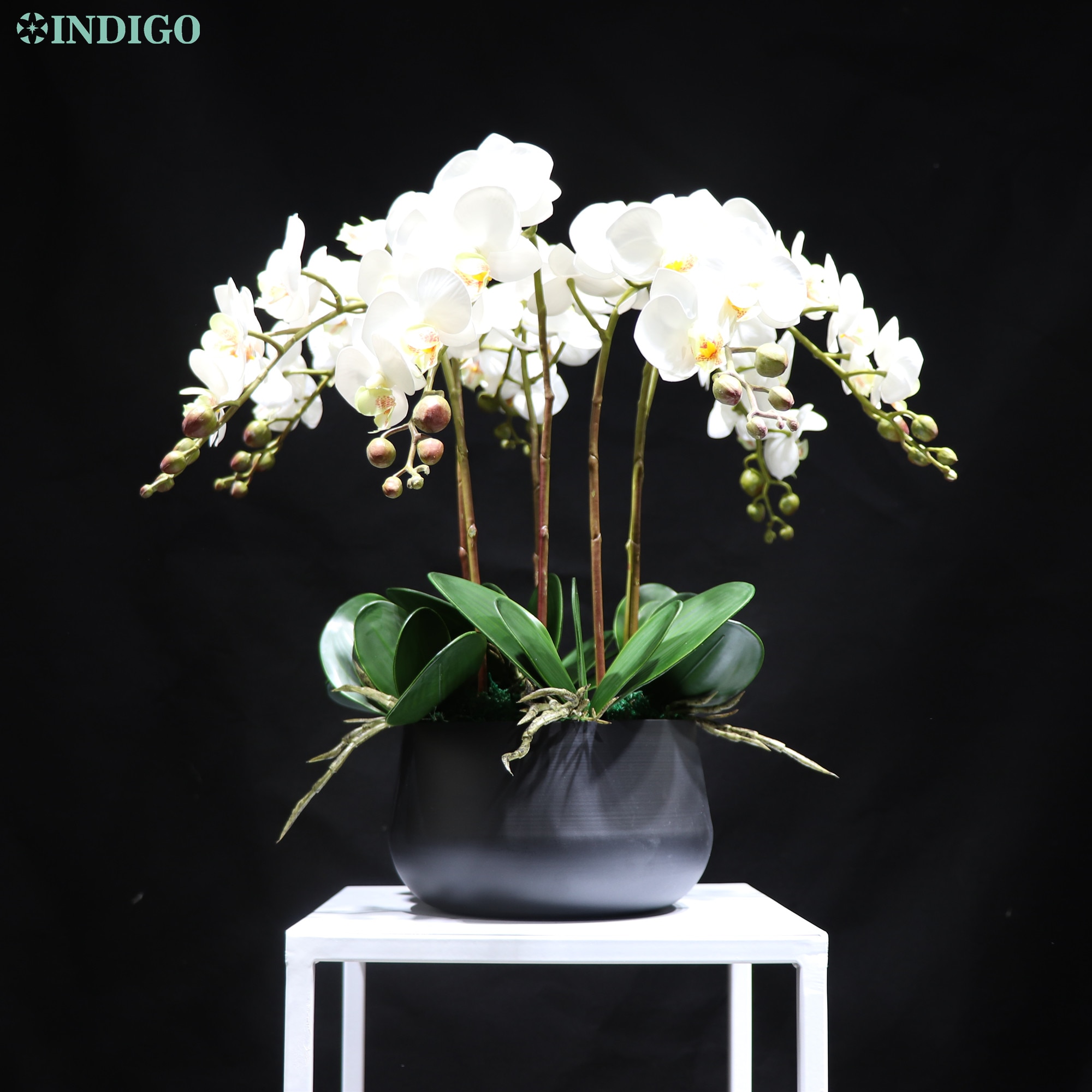 54Mm Indigo- White Orchid (7Db Orchidea 5Db Leaves Pot) Diy Flower Arrangement Touch