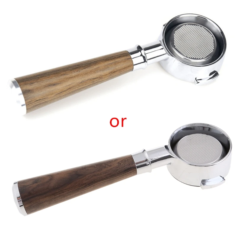 58 Mm -Es Kávéfőző Szűrő Tartó E61 Fenék Nélküli Portafilter Fa Fogantyúval