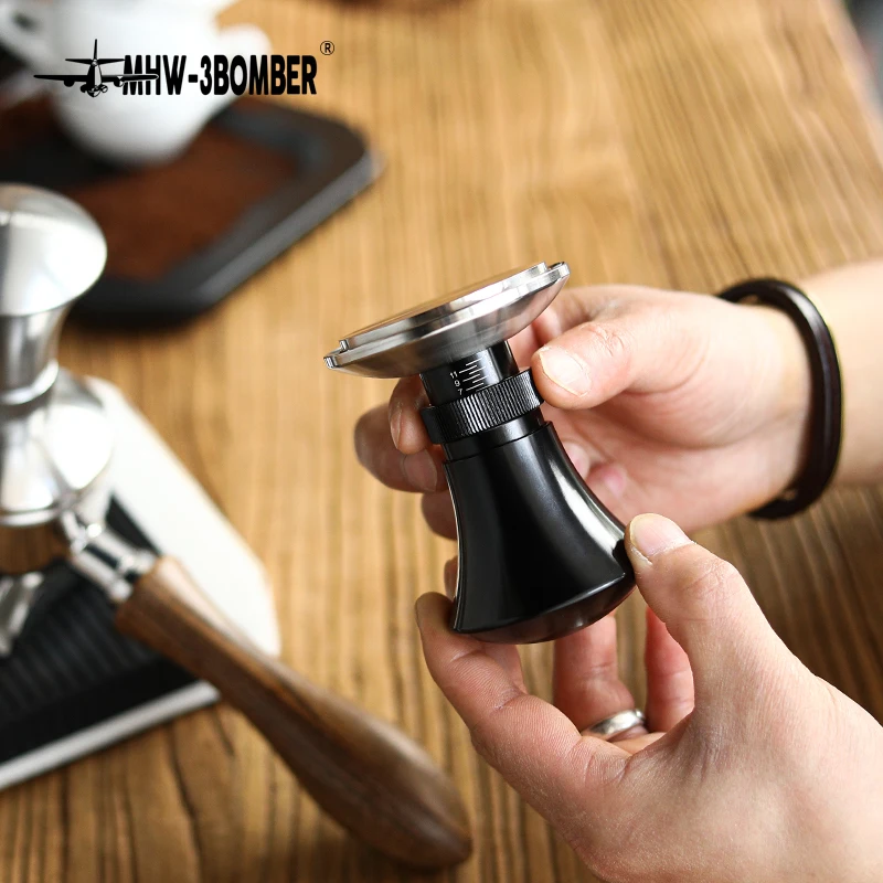 58,35 Mm Állítható Magasság/Nyomás Kávéhamper Por Hammer Espresso Power Tamper Rozsdamentes Acél Lapos Alap Kávéfajta