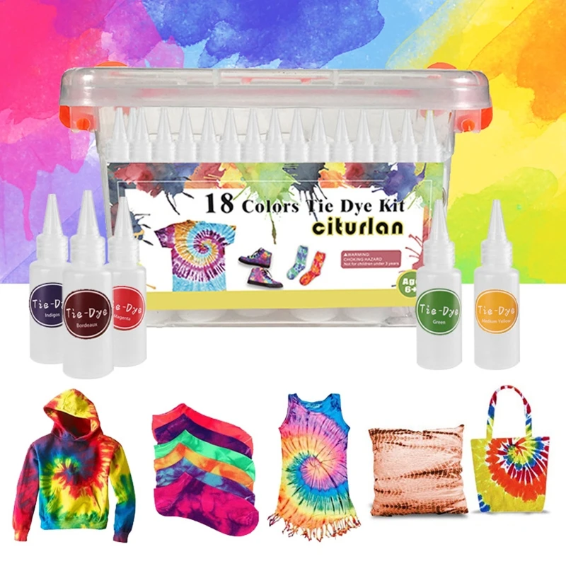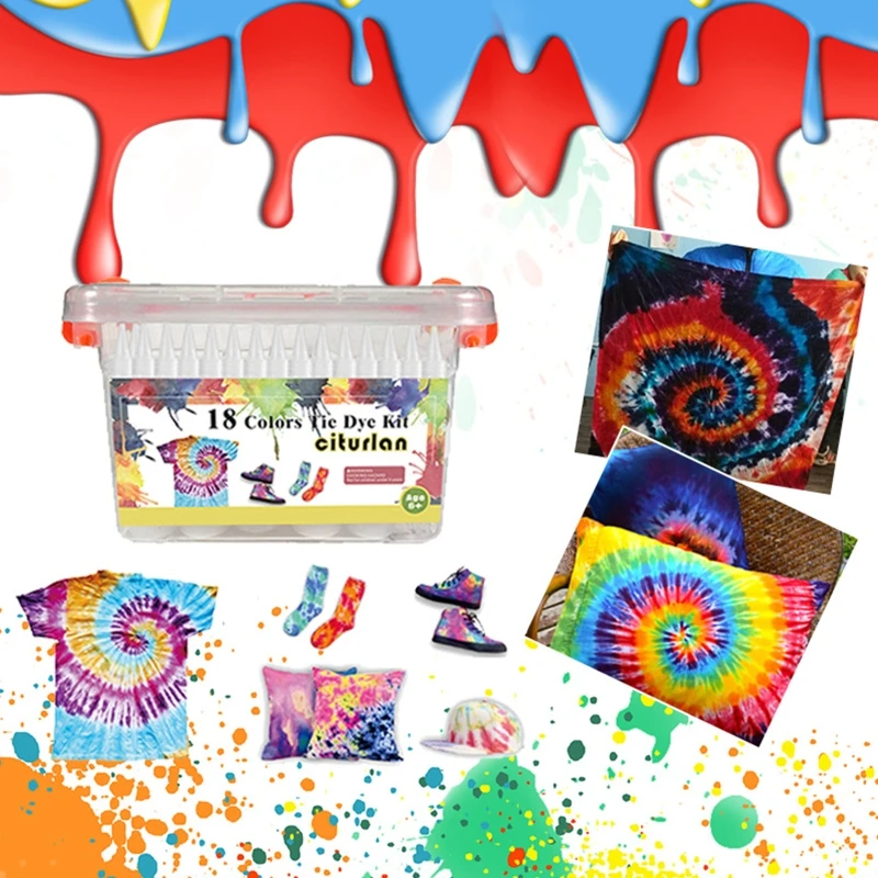 594C 1 Set 18 Színű Nyakkendő-Festékkészlet, Festék És Tároló Doboz Üres Palackok