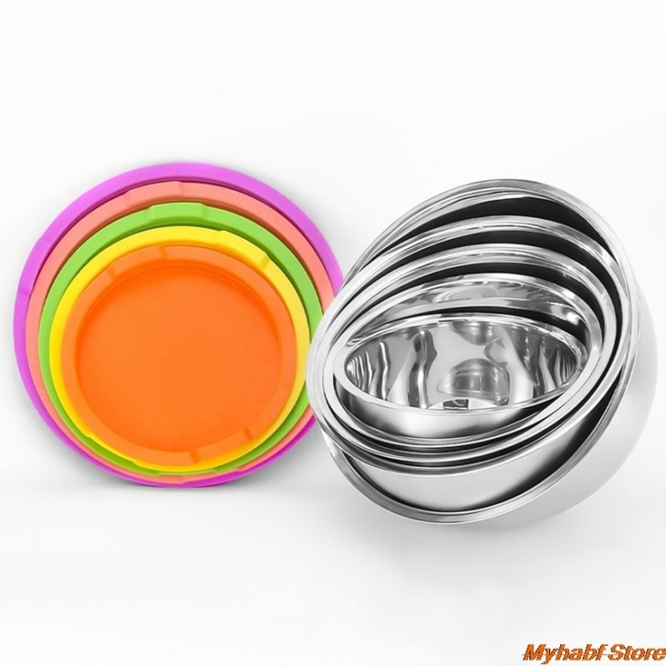 5Db 18-26 Cm Rozsdamentes Acél Keverőtál Fedéllel A Konyhai Tojás Saláta Ételek Keverő Tálak Élelmiszer-Tároló Tál Asztali Edények