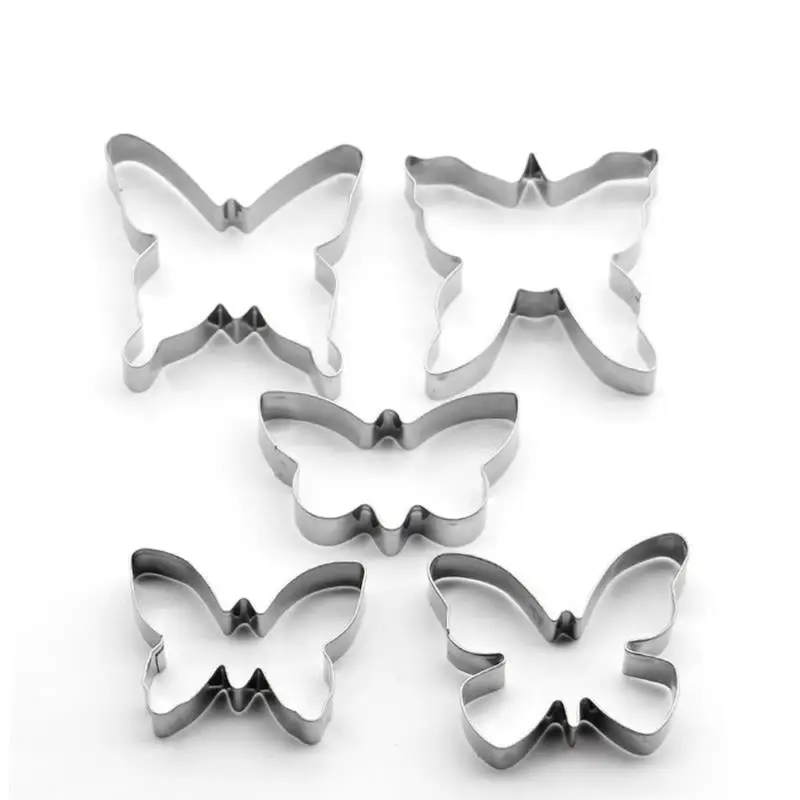 5Db/Beállított Pillangó Alakú Süti Vágó Barkács Rozsdamentes Acél Agyag Penész Aranyos Keksz Sütőszerszámok Kiegészítők
