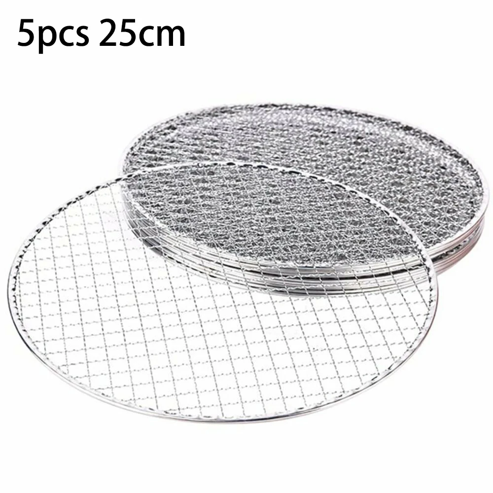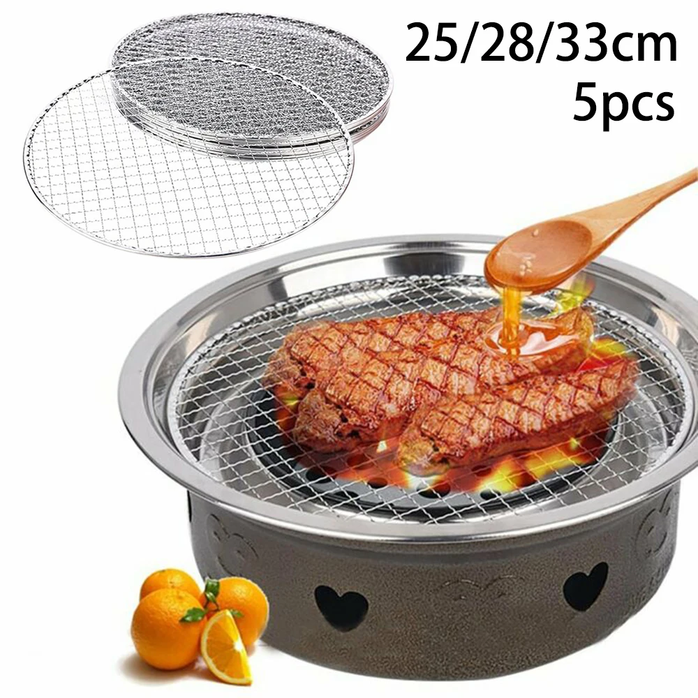 5Db Kerek Bbq Grill Nettó Eldobható Barbecue Hűtőszekrény Rács Vas Sült Főzési Grillezés Kültéri Kempinghez
