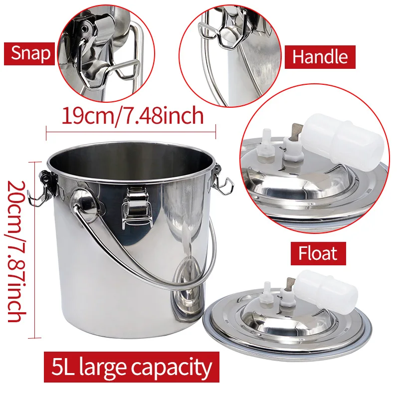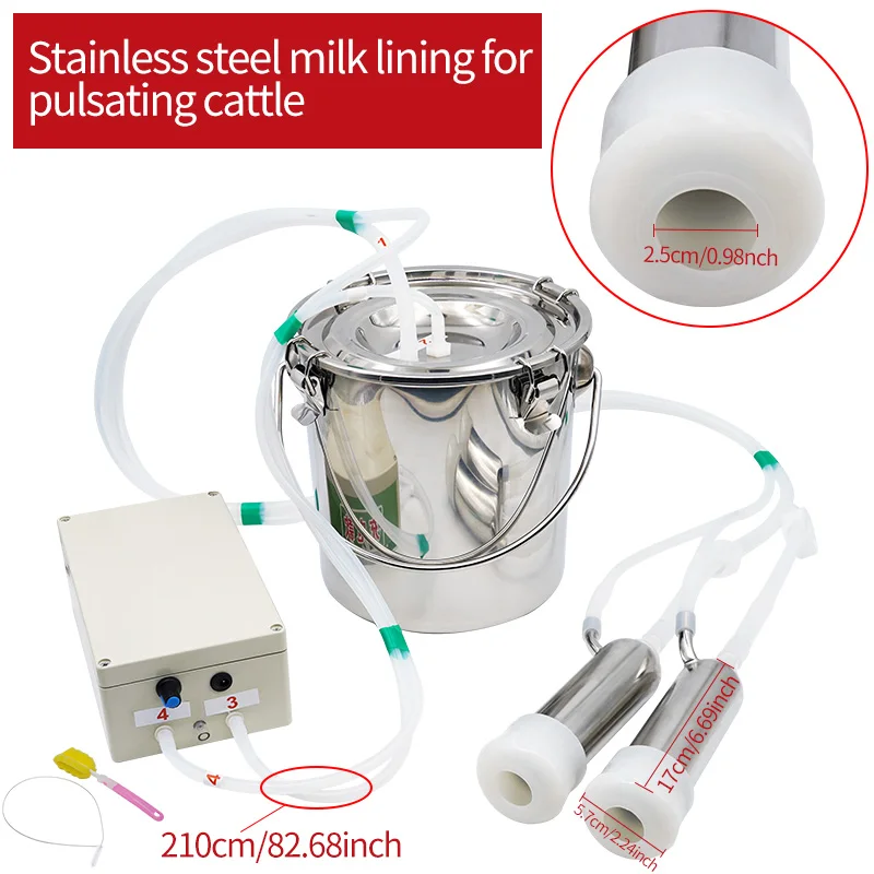 5L Elektromos Fejőgép Szarvasmarha Kecske 220 V -Os Pulzáló Fejlőgép Rozsdamentes Acél Tejvödör Vákuumszivattyú