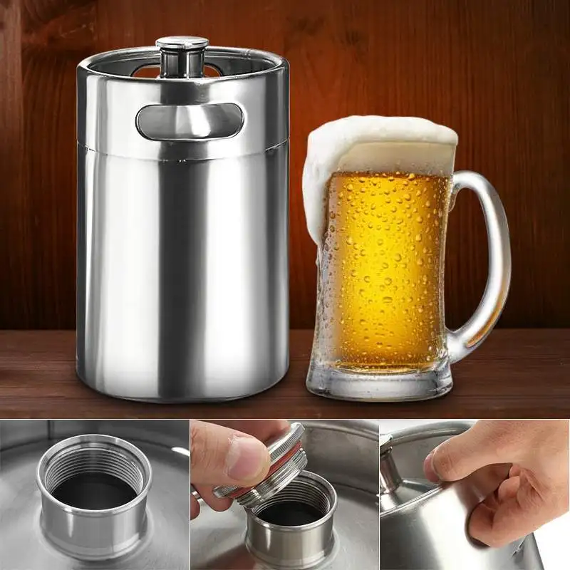 5L Sörhordó Mini Hordó Stílusú Growler Hordozható Sör Palack Rozsdamentes Acél Sör Kellékek Tartsa A Sört Otthoni Kemping Piknikhez