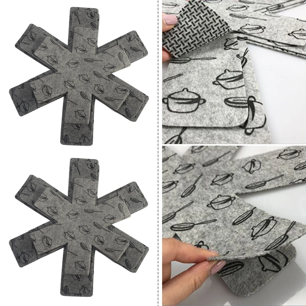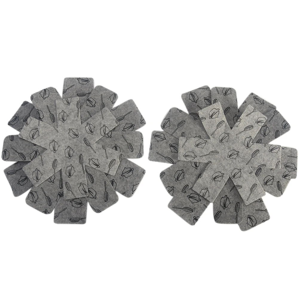 6Db/12Db Edény És Serpenyővédő Nem Tapadós Szürke Nyomtatott Elválasztó Párnák Serpenyő Alsó Hőszigetelés Védje A Edények Felületeit Pan Pad