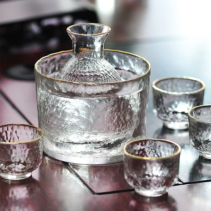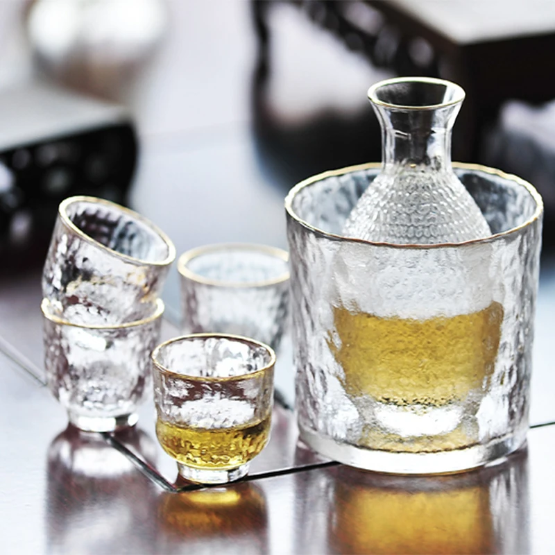 6Db Japán Szeszes Palack Beállított Arany Szélű Üvegszakas Rizs Boros Üveg Fehér Bor Üvegmelegítő Forró Kedvéért Borhoz