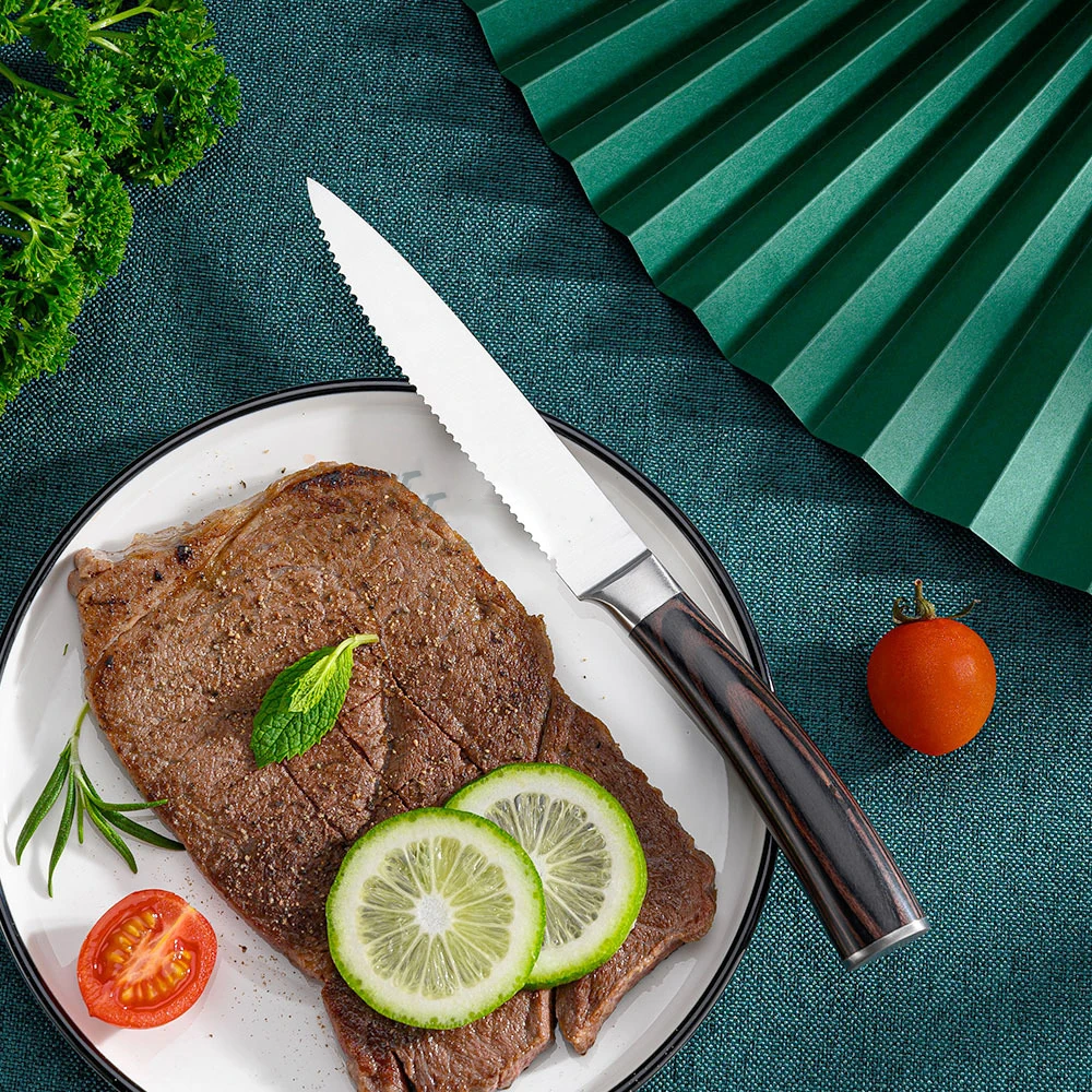 6Db Steak Késkészlet Japán Rozsdamentes Acél Kés Fa Fogantyú Bambusz Tároló Doboz