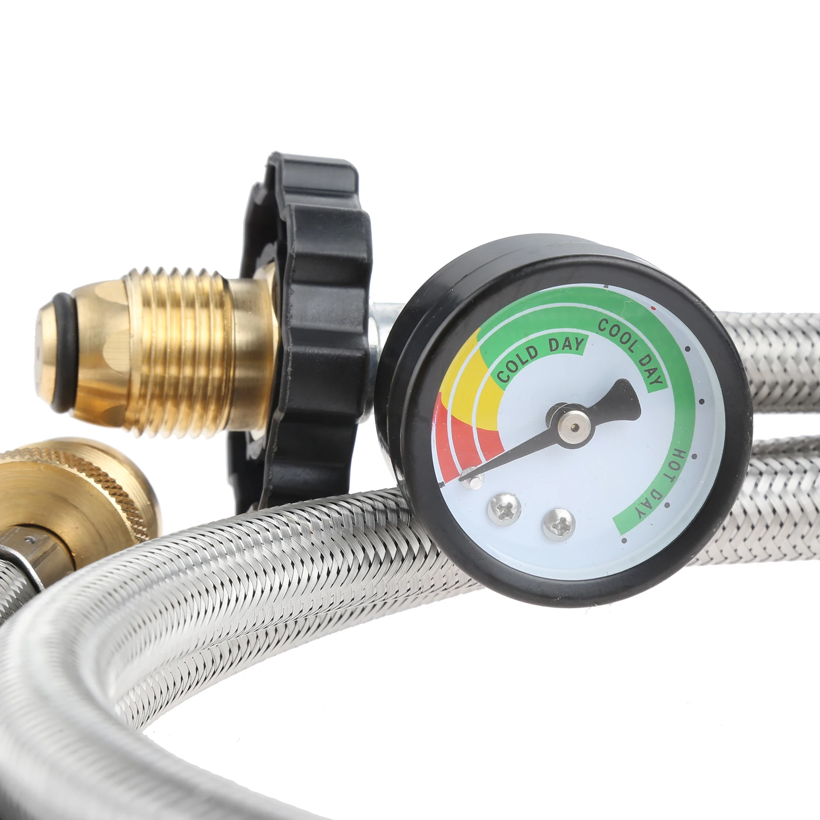 6Ft Fonott Propán Tömlő + Mérőmérőhenger Szál Rozsdamentes Acél Cga600 Kimenet Acme Nut Qcc1 1-5-40 Konverter Kályha
