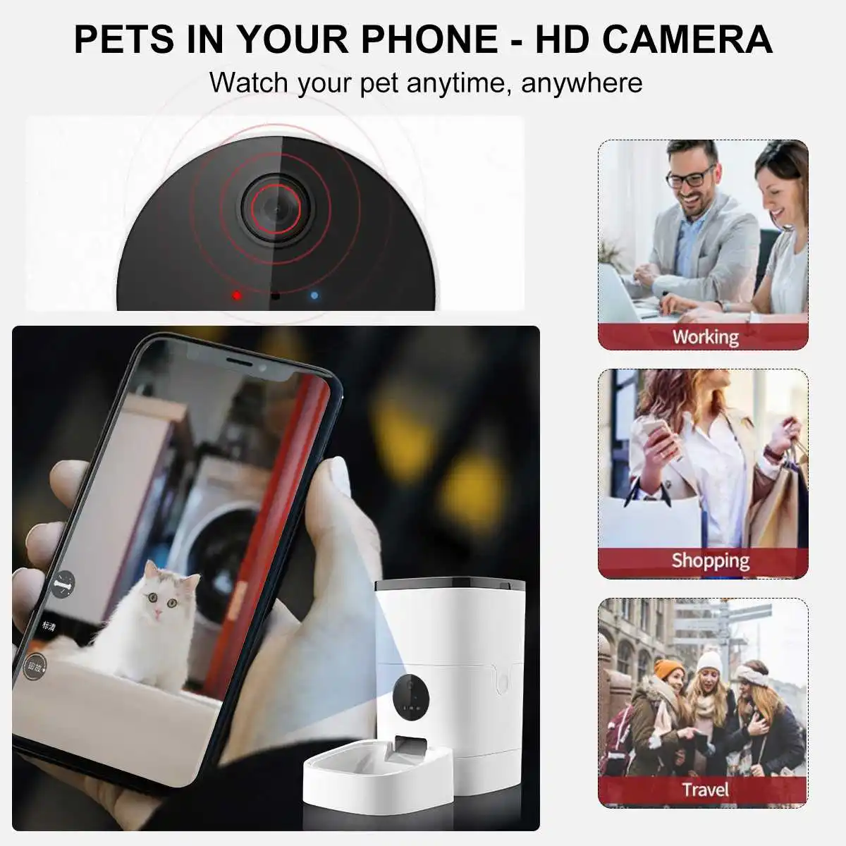 6L Automatikus Pet -Adagoló Intelligens Távirányító 5S Voice Felvételi Alkalmazás Contro Cat Kutya Food Adagoló Vedio Verzió Hd Kamerával