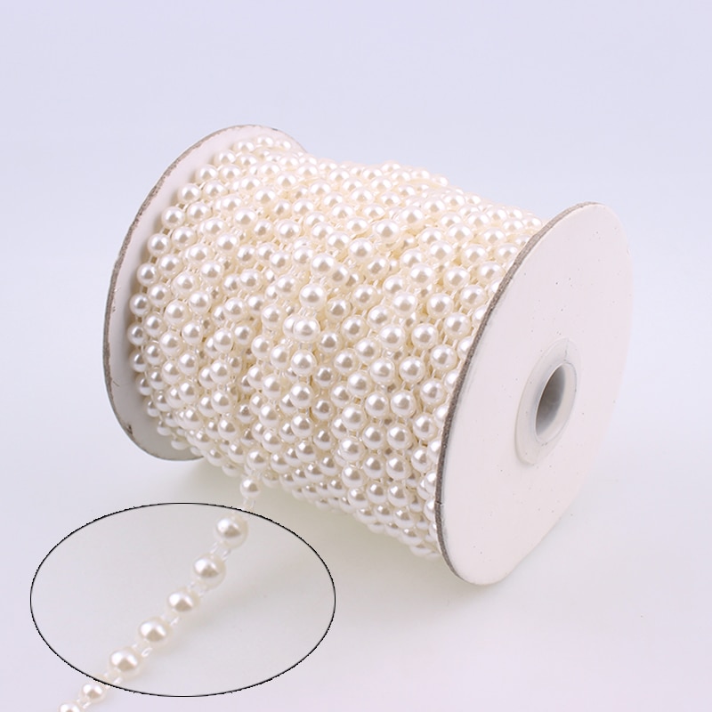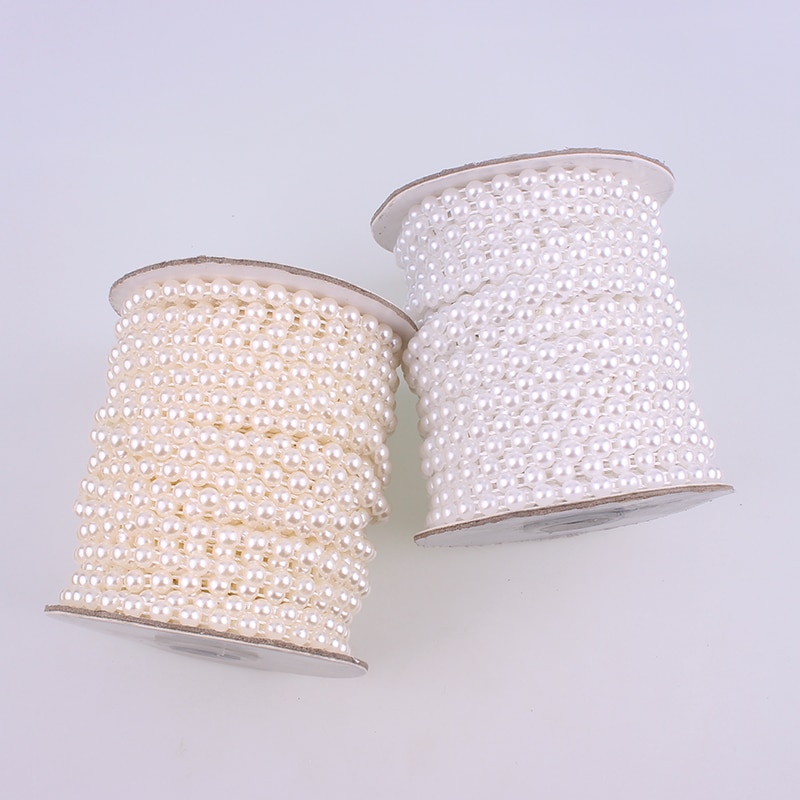 6Mm 25M / Tétel Fehér Elefántcsont Fél Gyöngy Lánc Díszítő Strassz Esküvői Díszítés Húr