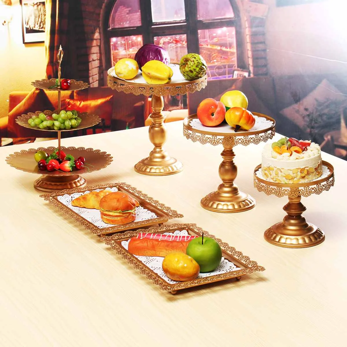 7 Darab Arany Fehér Torta Állvány Kerek Fém Kristály Cupcake Desszert Kijelző Talapzat Esküvői Party