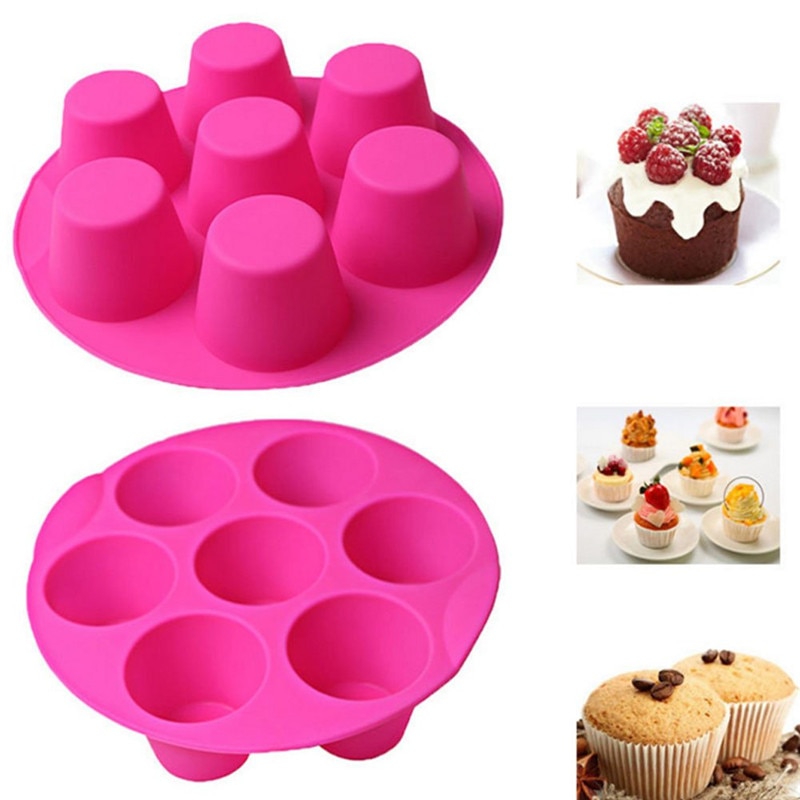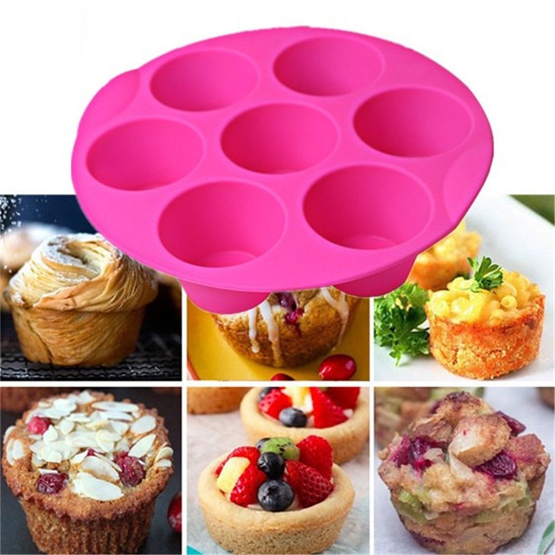 7 Üreges Kerek Muffin Csésze Szilikon Penész Torta Sütőedény Sütőtálca Tálca Cupcake