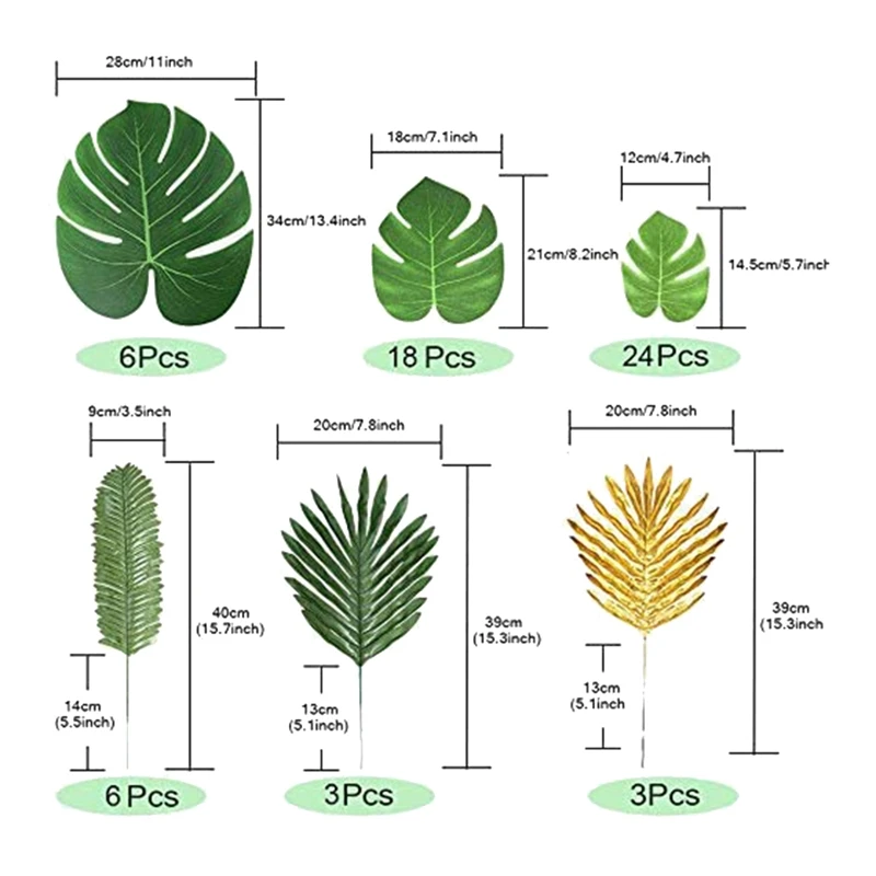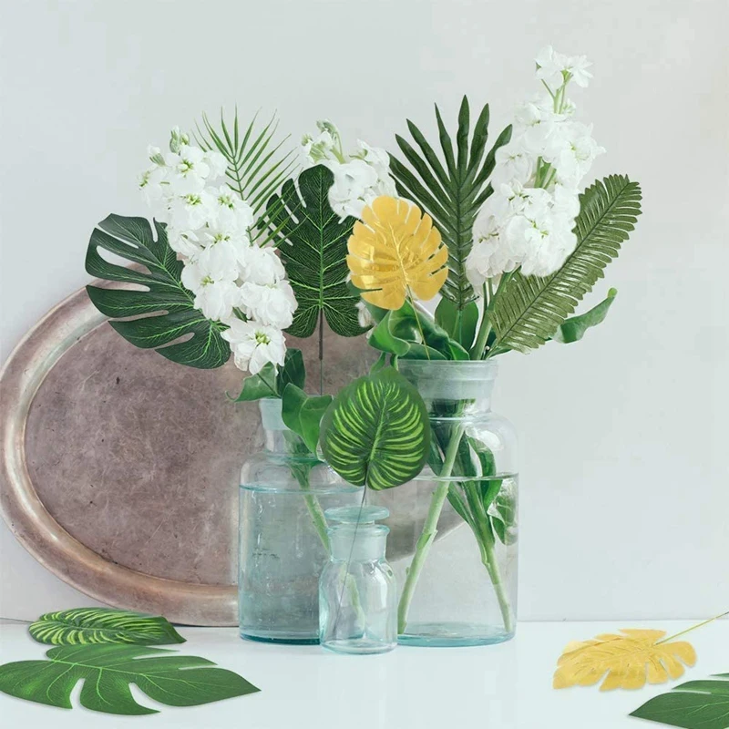 72 Pcs Mesterséges Pálma Trópusi Levelek Dzsungel Dekorációk A Tengerparti Baba Zuhany Esküvői Születésnapi Dekorációkhoz