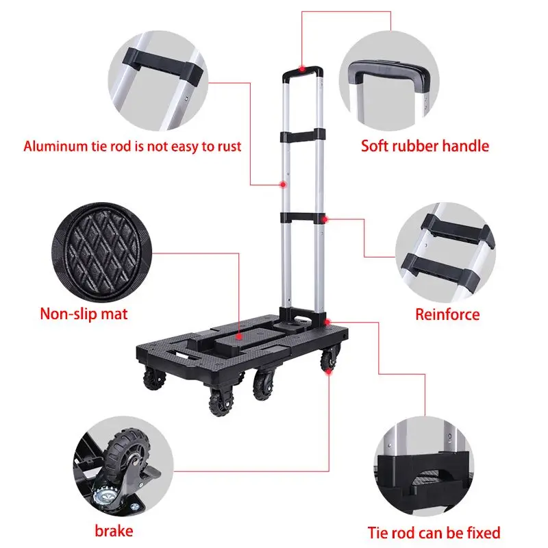 75 Kg Hosszabbítható Alap Nagy Teherbírású Összecsukható Kézi Zsák 7 Kerekes Kocsi Teherautó -Kosár Utazás Hordozható Otthoni Használat
