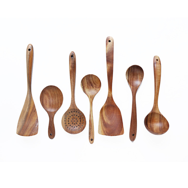 7Db/Set Természetes Faasztal Kanala Evőeszközök Konyhai Szerszámkészlet Teáskanál Rizshez, Leveshez, Főzési Fából Készült Étkészletekhez
