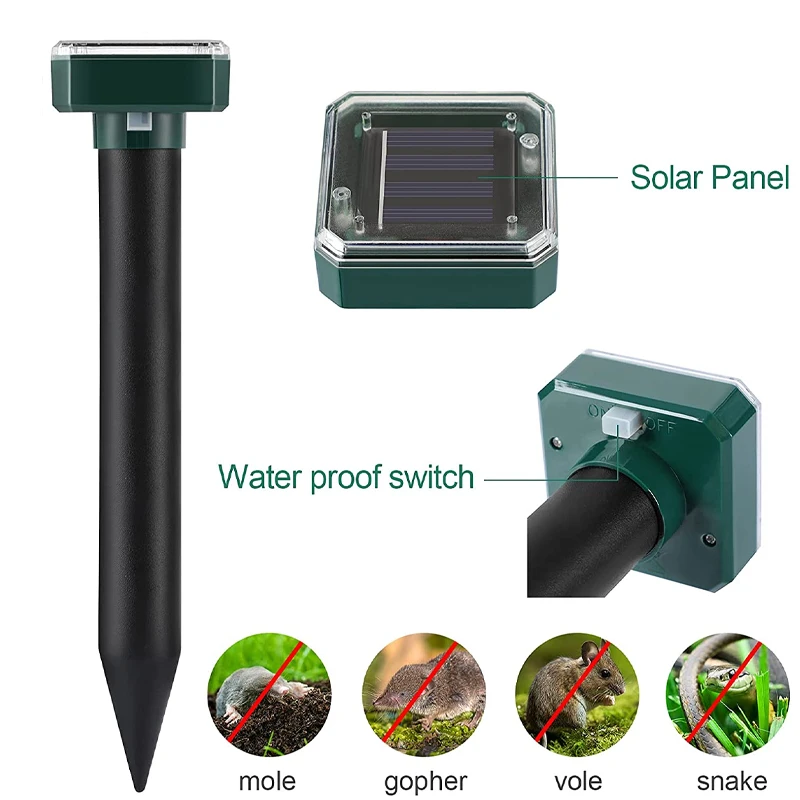 8/10Db Ultrahangos Napenergia -Állatok Vízálló Riasztó Kültéri Kártevő Rágcsáló Gopher Elrettentő Vole Kígyó Üldözés