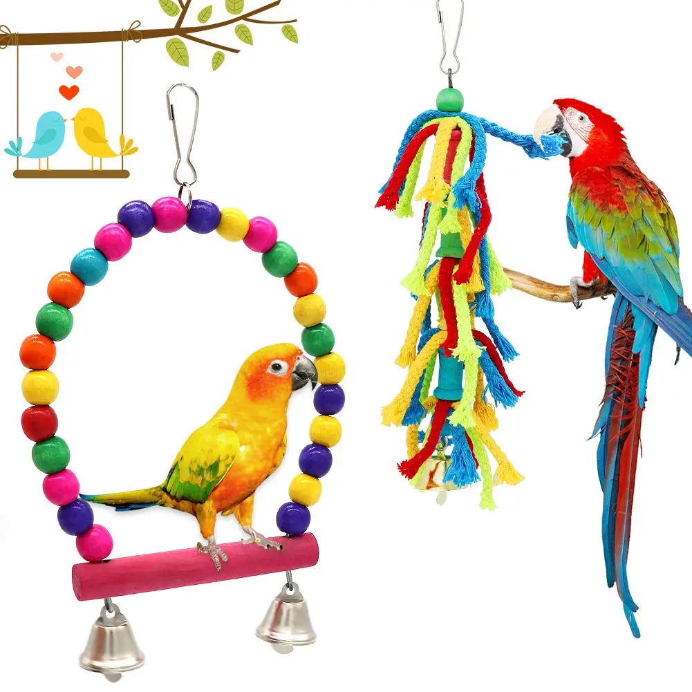 8 Db Kis Madár Lengő Játékok Papagájok Rágó Természetes Fa És Kötél Bungee Madárjáték Szardella, Papagájok, Cockatiel, Conure Számára