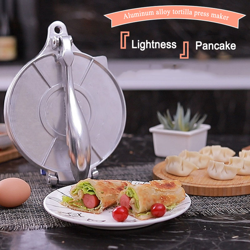 8 Hüvelykes Alumínium Tortilla Sajtó Készítő Rozsdamentes Acél Palacsinta Pite Liszt Kukorica Tészta Presser Pan Konyha Sütés Gombócellák