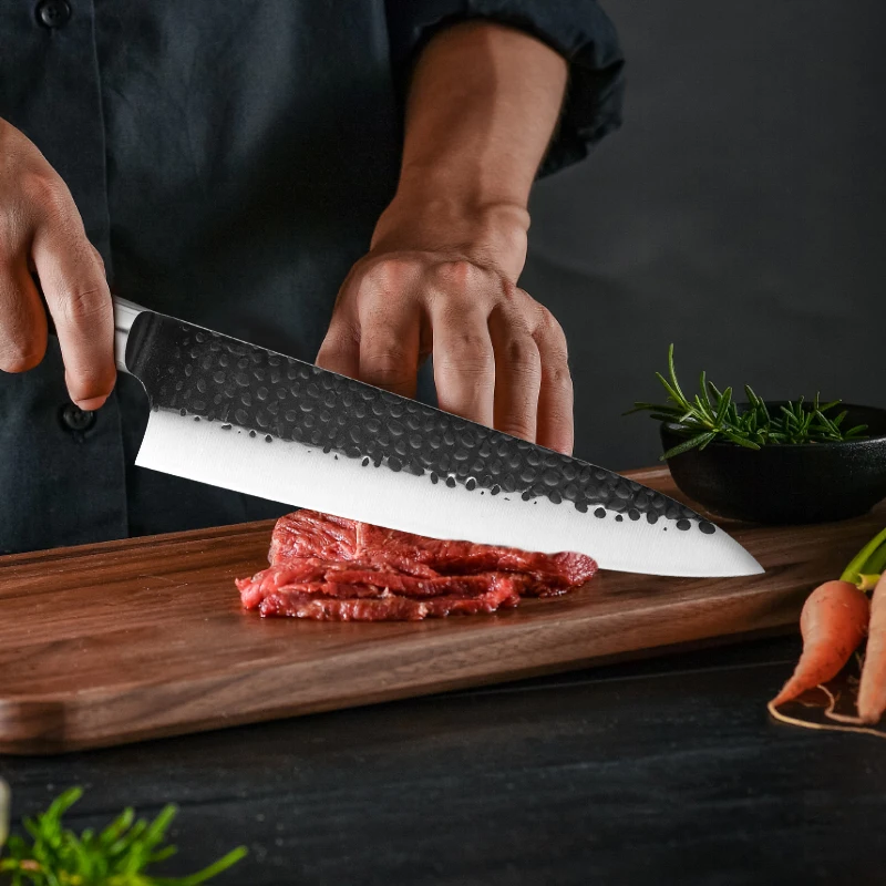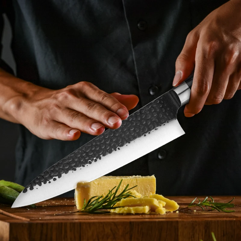 8 Hüvelykes Kovácsolt Séf Kés 4Cr13 Széna Acél Japán Konyhai Szakács Kések Hús Zöldség Hasító Kés Fából Készült Fogantyúval