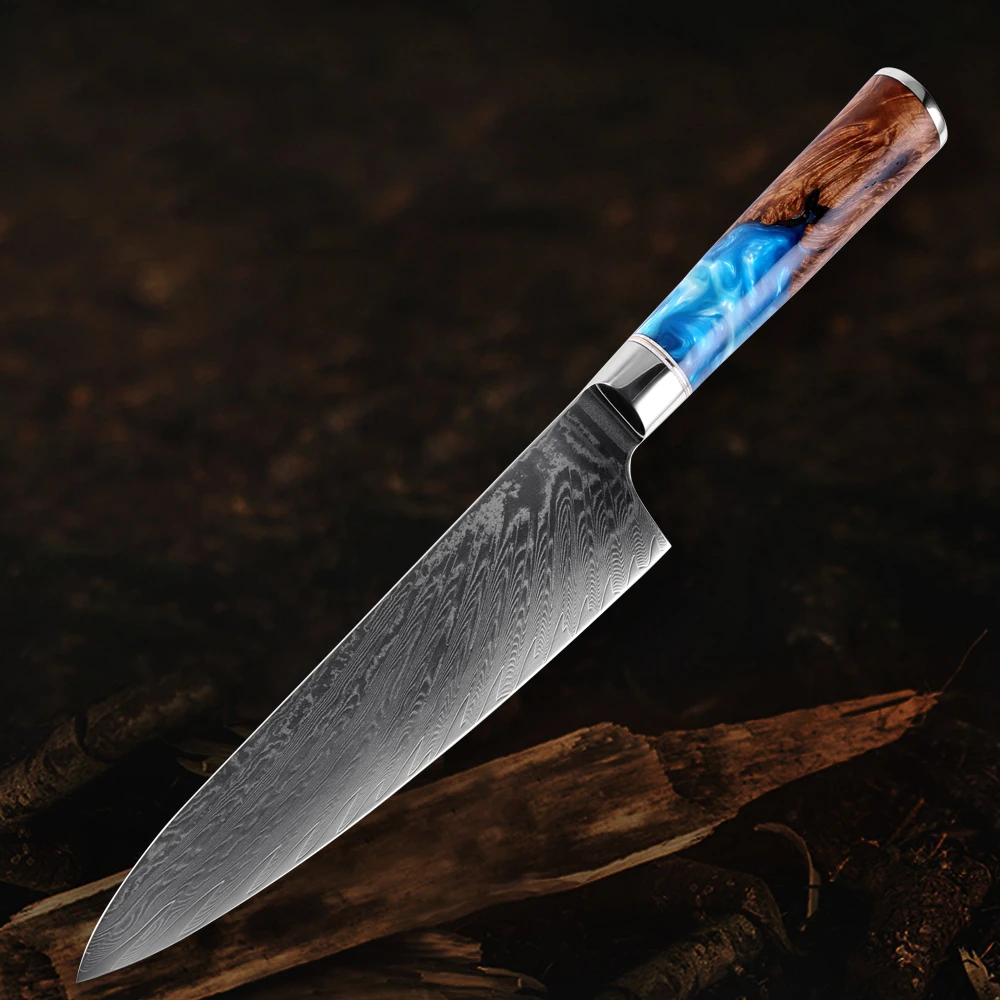 8 Hüvelykes Séf Kés Aus10 Damascus Acél Éles Professzionális Konyha Szakács Koleva Kés Hús Zöldség Gyümölcs Lazac Szeletelő Kések