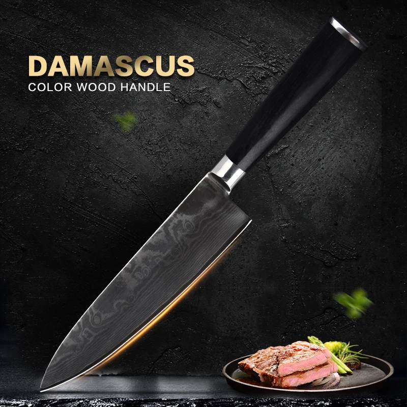 8 Hüvelykes Segédprogram Séf Kés 67 Réteg Vg10 Damascus Acél Konyhai Kések Otthoni Főző Cleaver Szeletelő Késsel