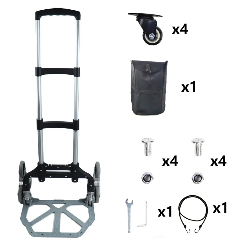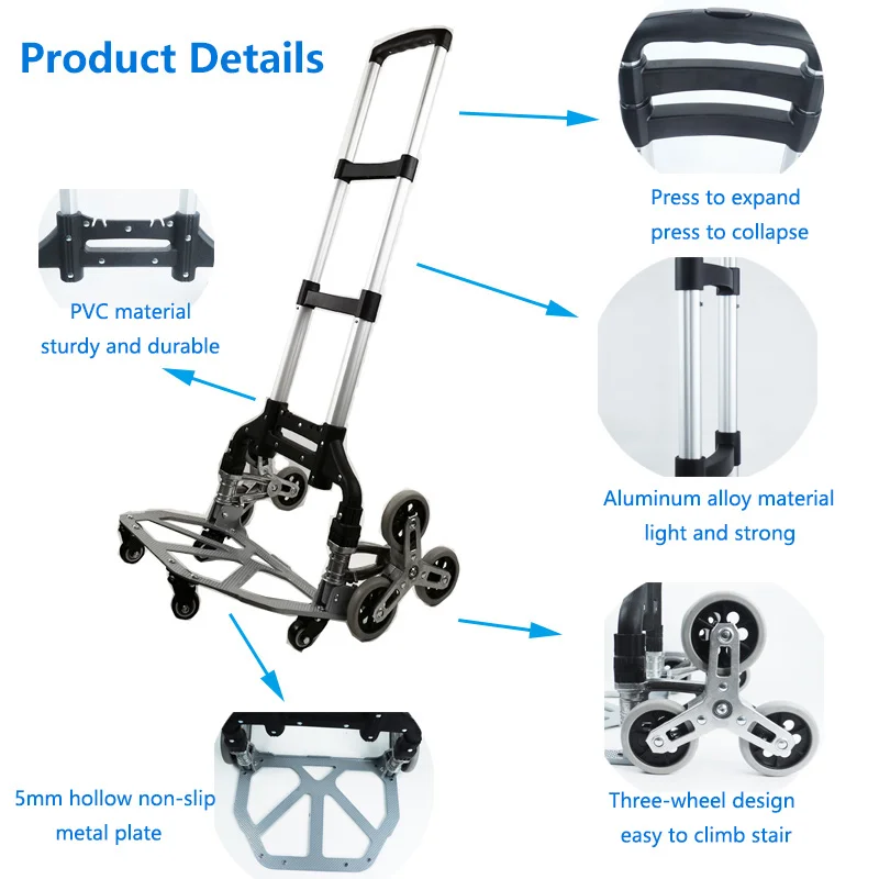 80 Kg -Os Alumínium Ötvözet Három Kerék Hegymászó Lépcsőn, Kiegészítő Kerékkocsi Bevásárlókosár Tárolózsákkal, Rögzített Kötéllel