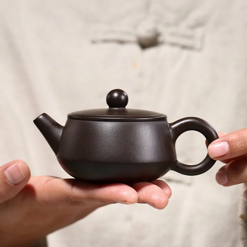 90 Ml Kreativitás Yixing Lila Agyag Teáskannák Nyers Érc Fekete Iszap Lapos Kő Kanál Tea Edény Háztartási Szűrő Zisha Tea Készlet