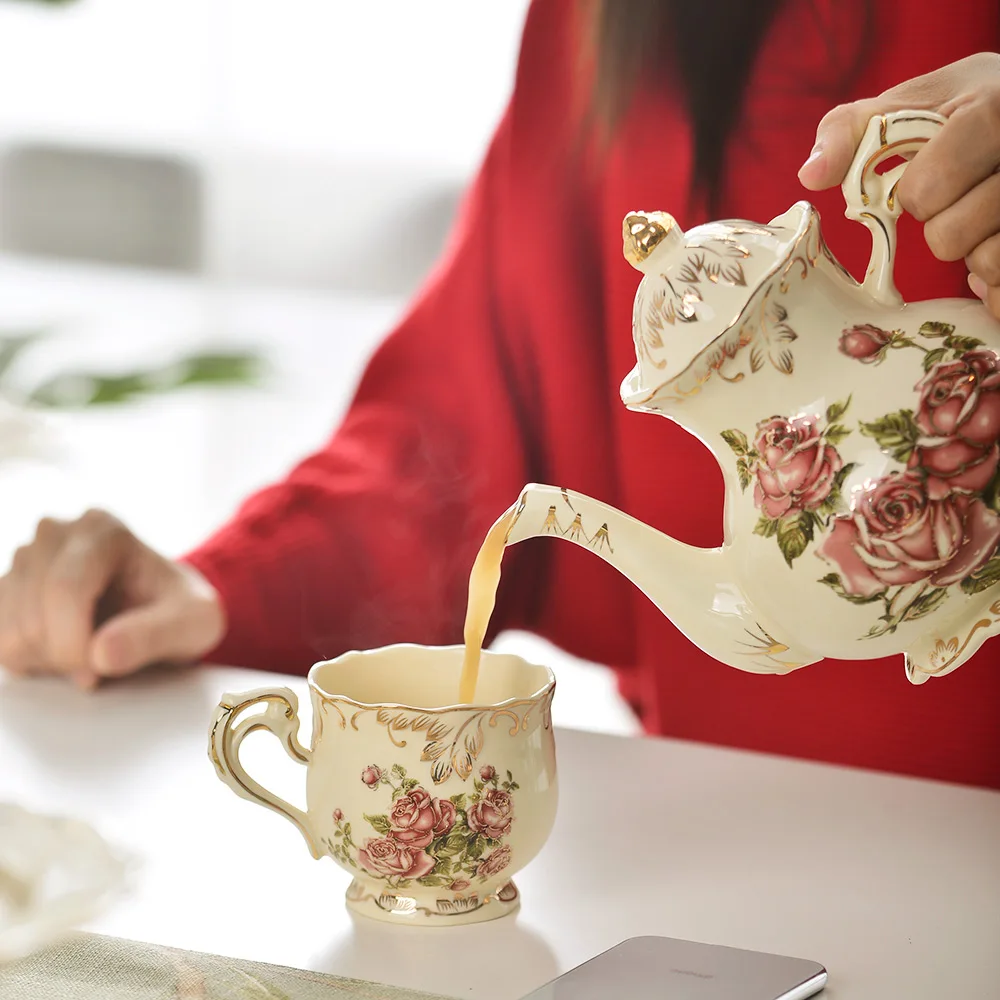 900 Ml -Es Új Stílusú Kínai Kerámia Teáskanna Készlet Szép Porcelán Tea Edénykészlet Esküvői Tea Vízforraló Ajándékhoz